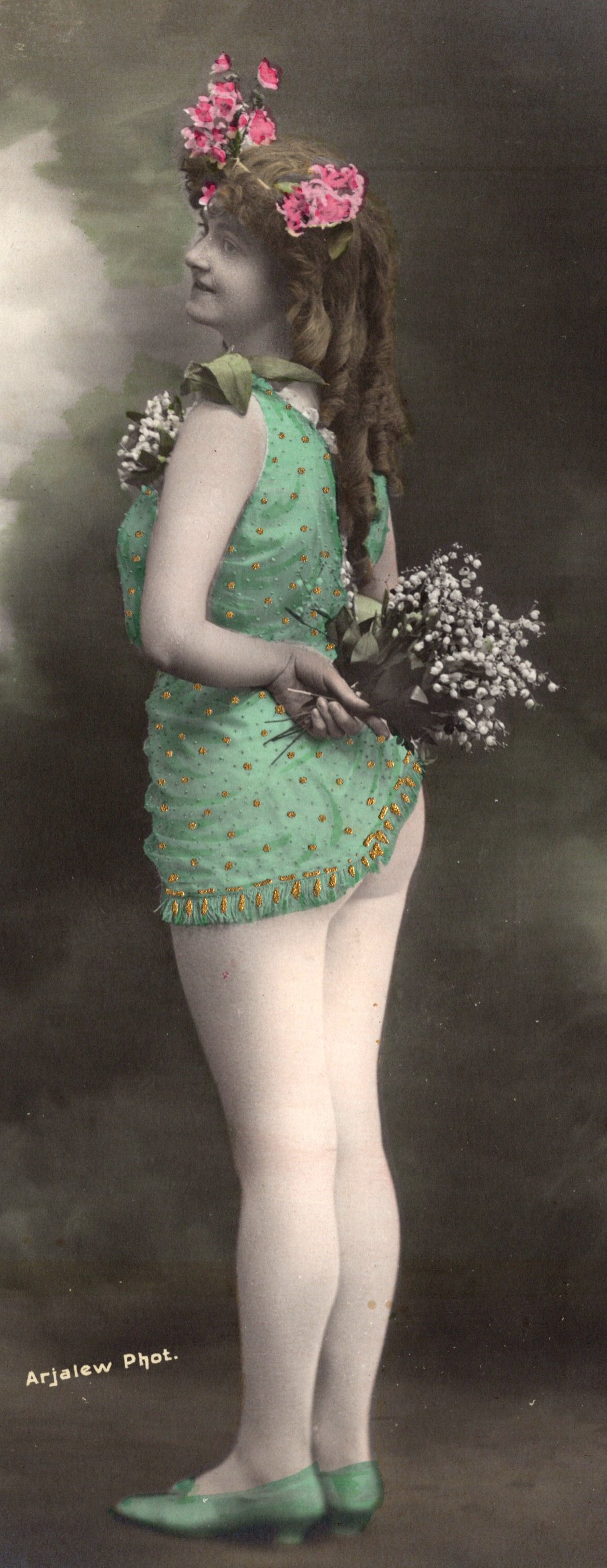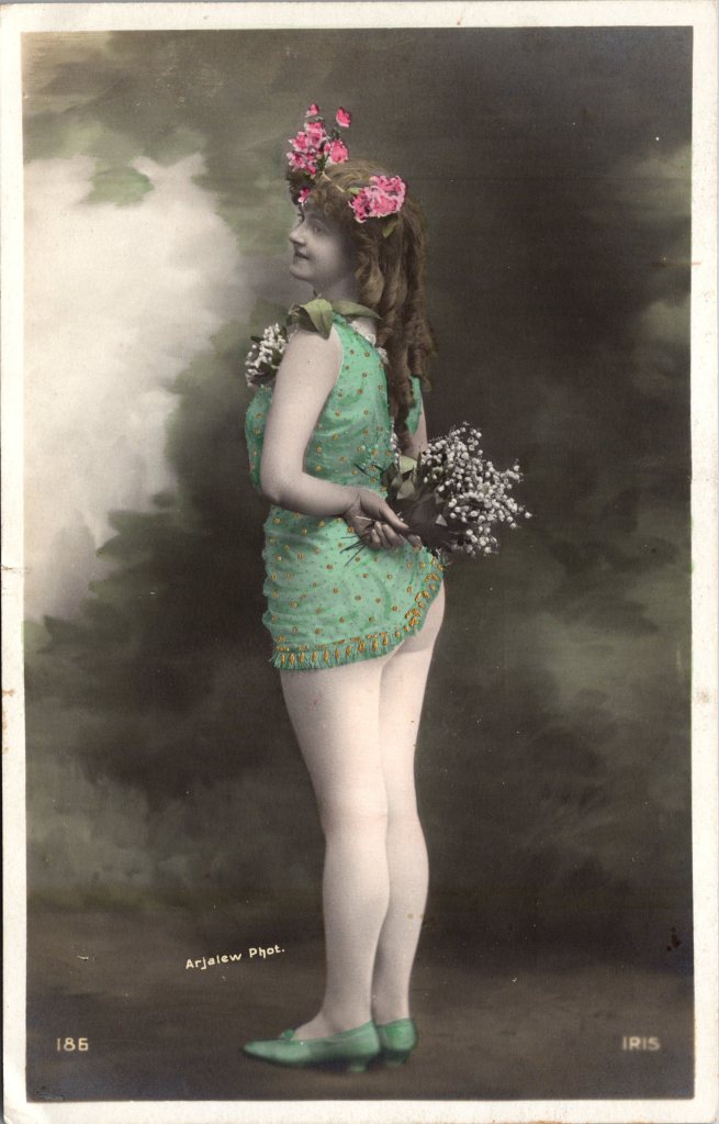 This vintage real photo postcard was mailed in 1903 and features Miss Alex, a lesser known actress or dancer of the Belle Epoque era. She was quite pretty. Many entertainers such as Miss Alex, were more or less prostitutes or “kept women”. Certainly, not all of these women were involved in such a lifestyle, and it is unknown how Miss Alex supported herself.