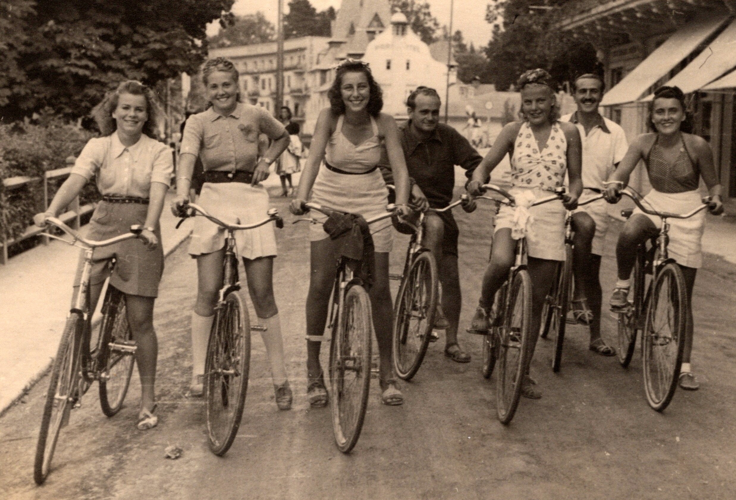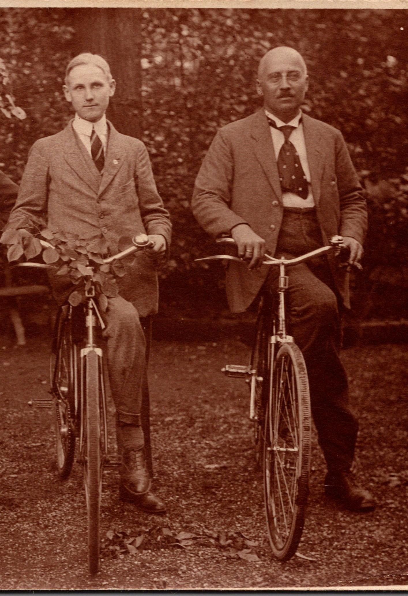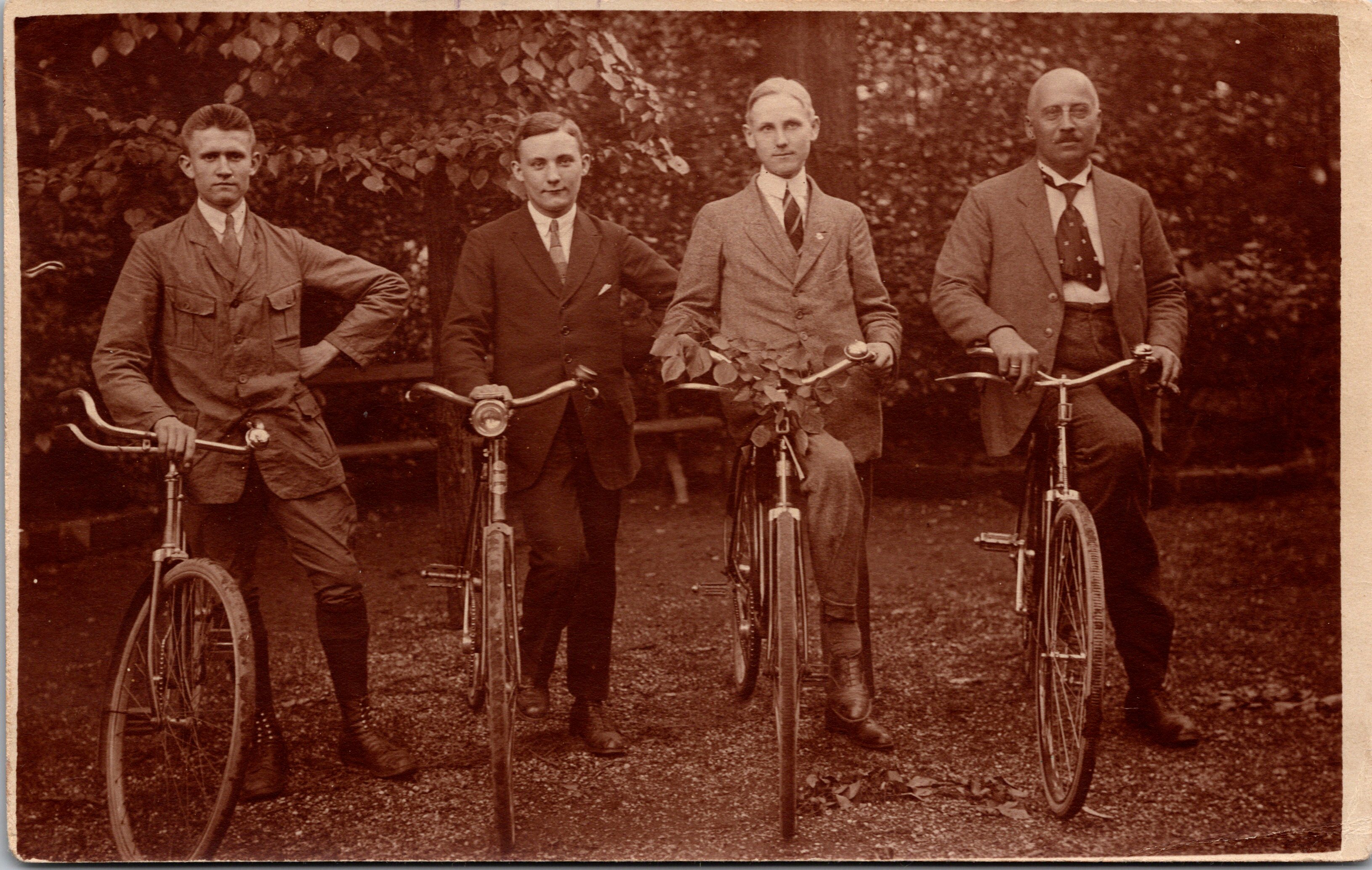 This vintage real photo postcard features a young woman and her bicycle. It is a studio photograph which explains why the woman and her bike are inside the house. (SOLD)