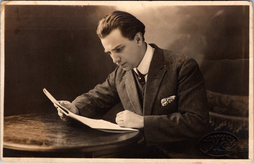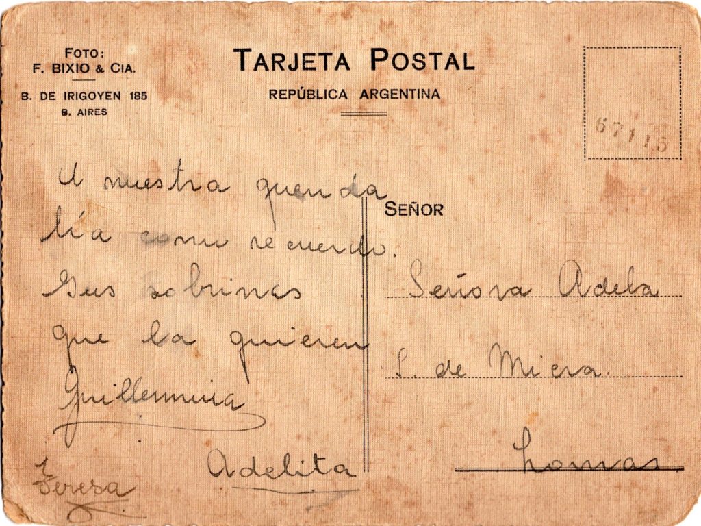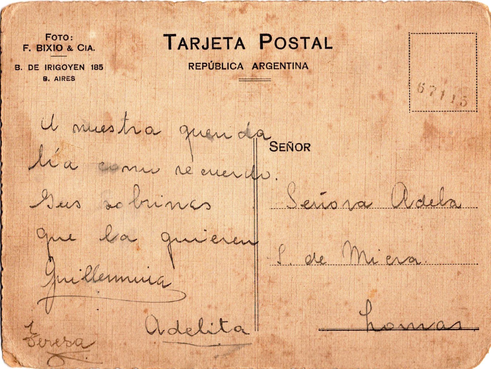 This scallop edged vintage undivided real photo postcard features a pretty young woman sitting in an unusual chair. She looks studious in her stylish glasses. As a collector and seller of vintage real photo postcards, I have found several photographers that I favor. The photographer of this postcard portrait, Florencio Bixio, is one of those photographers. Over many years I have collected and sold many of his photo postcards. Bixio was a talented photographer who operated photo studios in Buenos Aires, Argentina. He was active between at least 1900 and 1930. He died in Buenos Aires in 1933. Bixio specialized in studio portraits, wedding portraits, and photos of entertainers. He also was a correspondent for the magazine “Caras and Caretas”, as well as a producer of photo postcards. Between 1900 and 1930 he opened photography studios in partnership with two other photographers. These studios were called “Bixio and Merlino” and Bixio and Castiglioni”. He was of Italian descent and emigrated to Argentina in 1896. He died in Buenos Aires in 1933. This vintage portrait postcard was made on thicker card stock than most postcards. The card measures about 4 x 5.5 inches. SOLD