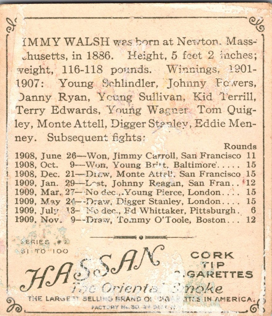 BOXER : JIMMY WALSH : HASSAN CIGARETTE CARD : (1910)