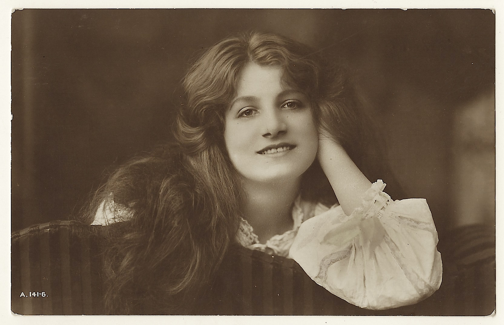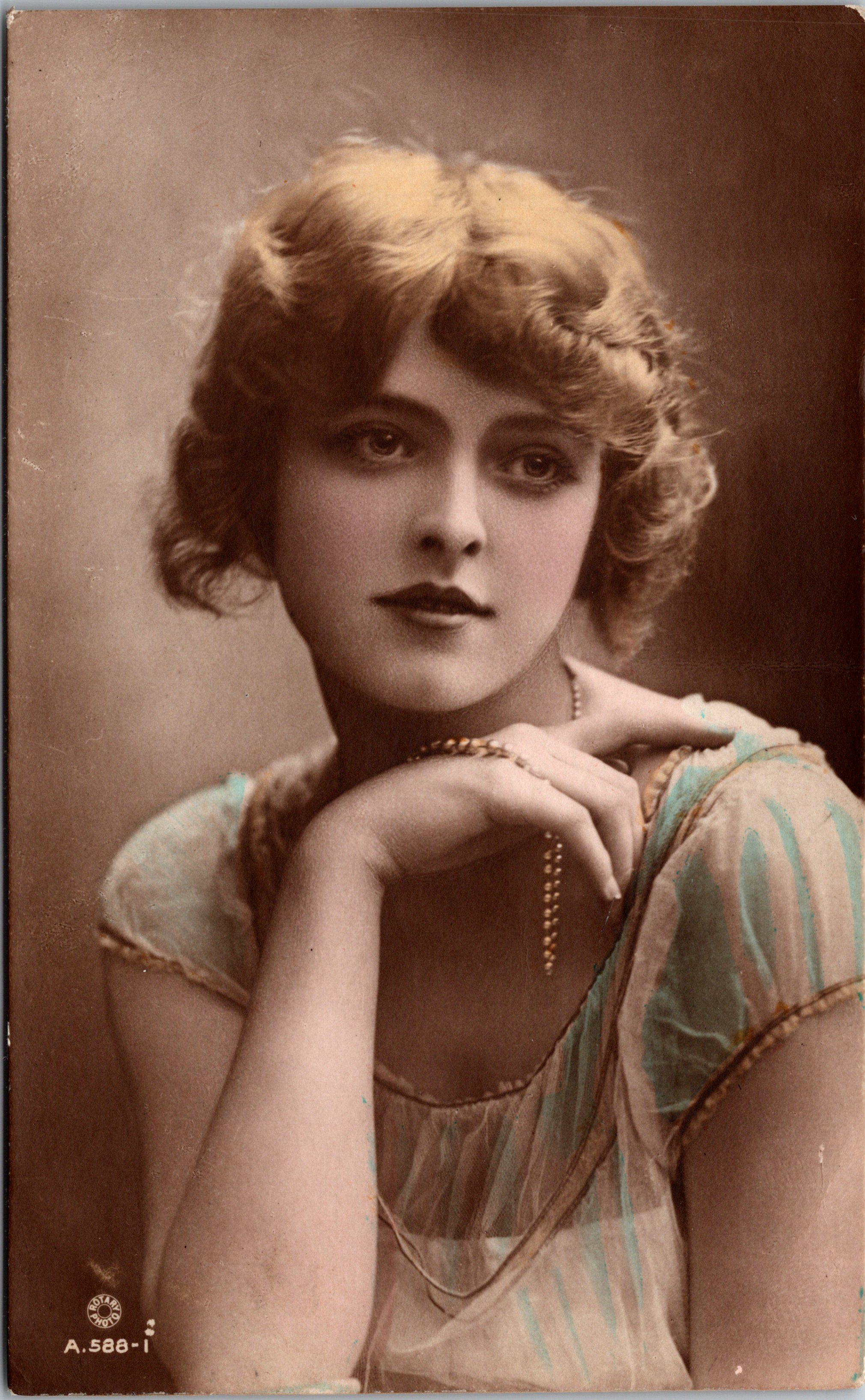 This vintage real photo postcard is a member of the Rotary Photo “British Beauty” series (no. A.141-6). The Cabinet Card Gallery has a number of “British Beauty” cards in it’s collection. This postcard was printed in Britain and is hand tinted. This postcard is in very good condition (see scans).