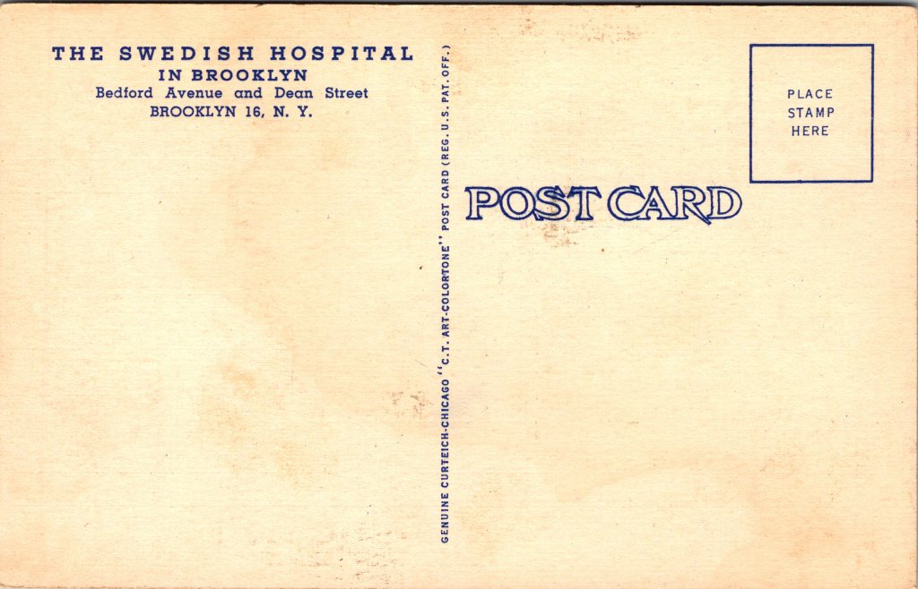 THE SWEDISH HOSPITAL : BROOKLYN, NEW YORK : VINTAGE POSTCARD