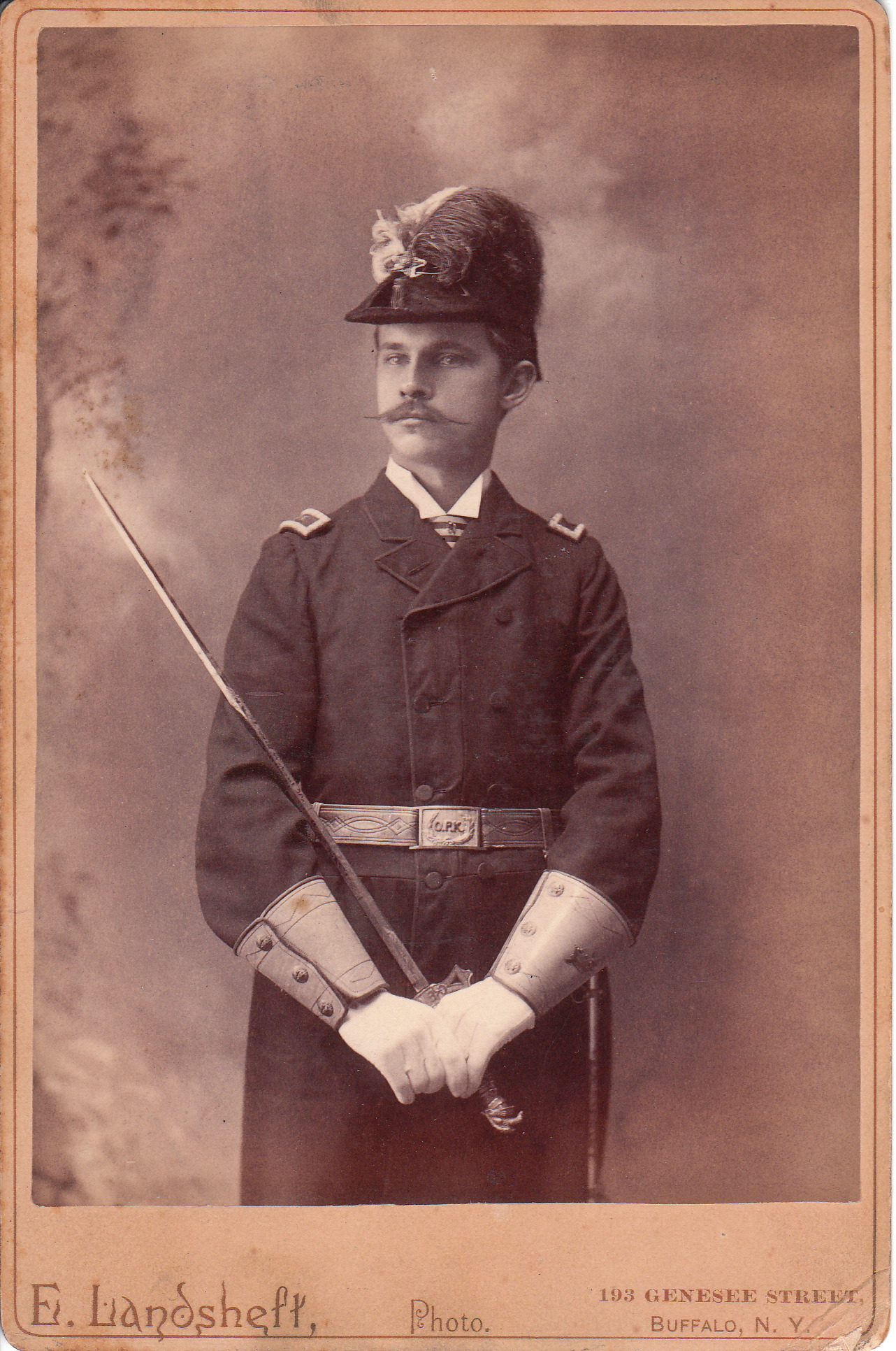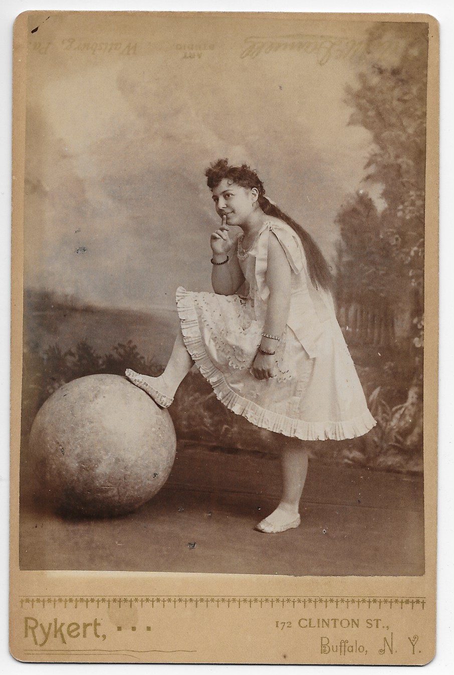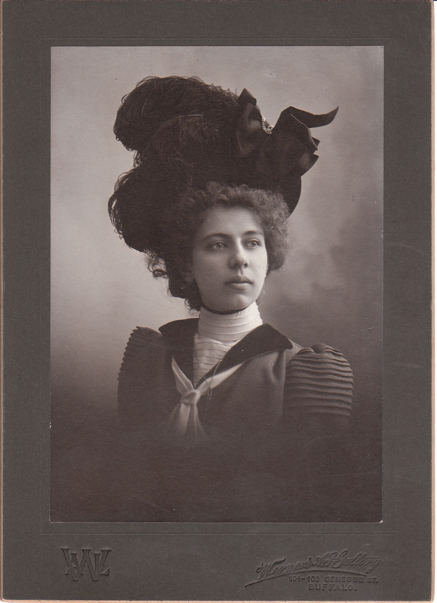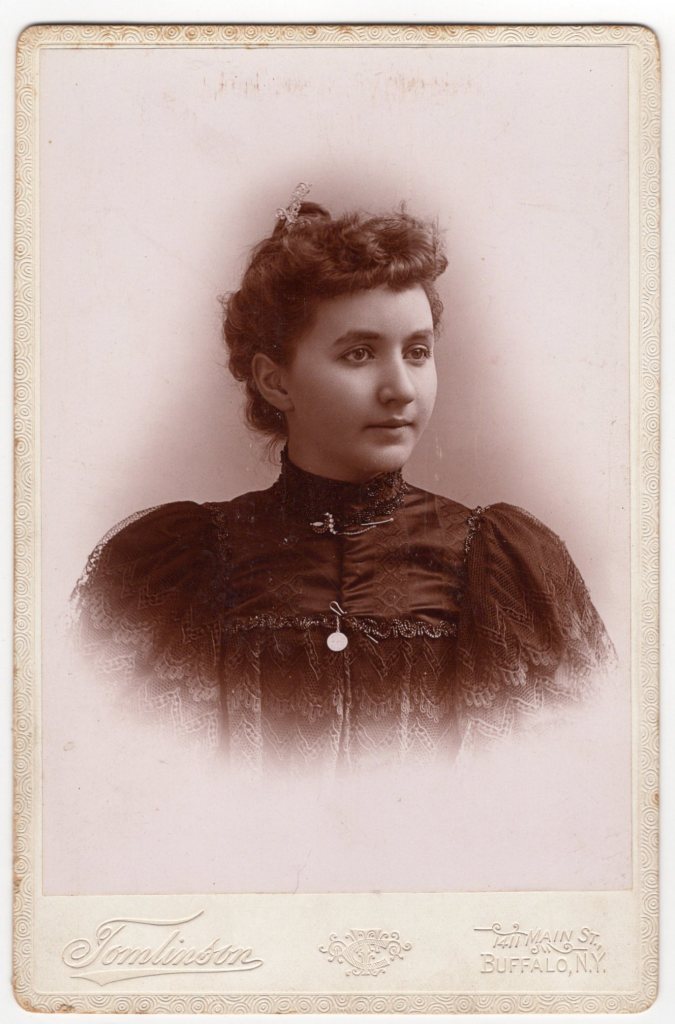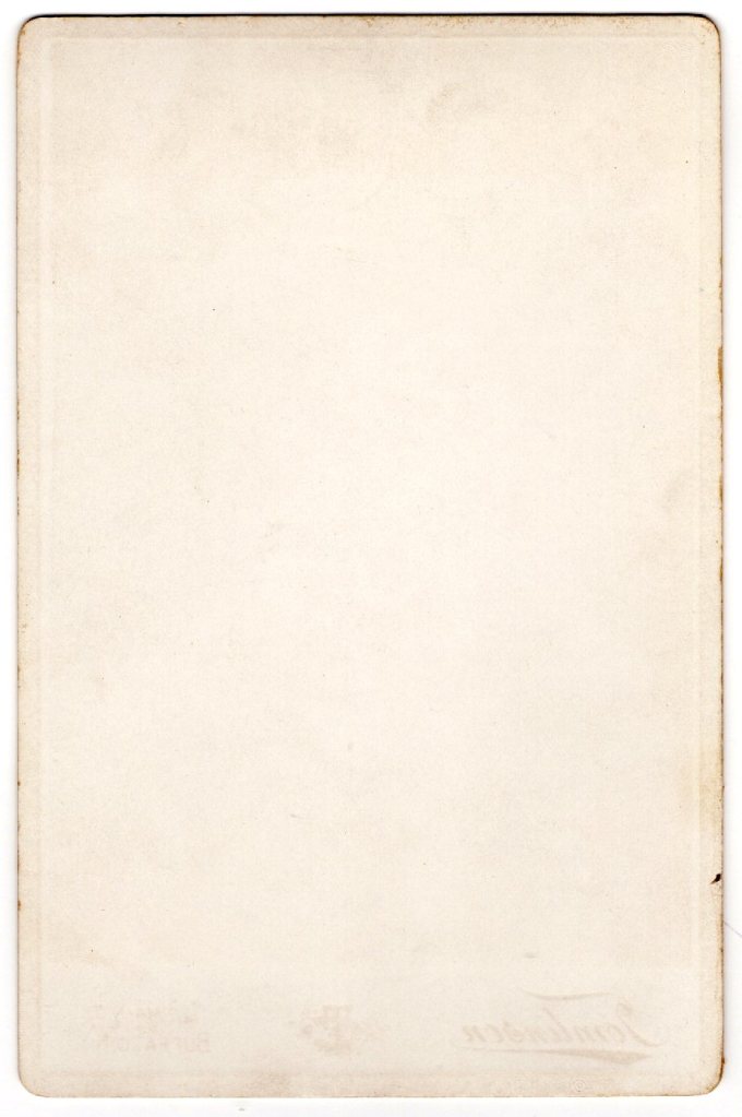 The gentleman in this vintage photograph looks like he just walked off the page of an issue of Gentleman’s Quarterly. His jacket is buttoned with only the top button and he is wearing a wide tie and pocket handkerchief. Note the watch chain under his jacket as well as the boater hat and cane that he is holding. The photographer of this image is Andrew Simson (1837-1922). He emigrated to Buffalo at the age of 11 from Germany. At the beginning of his career he had a partner and the name of their firm was Upton & Simson. Simson had a number of “claims to fame”. In 1901 he was an accredited photographer at the Pan American Exposition in Buffalo. He also is known for training Howard D. Beach (1867-1954). Beach was a great talent who worked in several disciplines. He was a portrait photographer, inventor, scientist, poet, lecturer and photo/art critic. He partnered with with Beach in 1896 (Simson & Beach) and in 1900 purchased Beach’s interest in the studio. Research revealed that Beach was considered the major photographer in Buffalo in regard to serving the “most cultured” citizens of the city. This photograph is not the same size as a cabinet card. It measures about 4 x 7 1/4 and is known as a “Promenade Card”. The printed word “Promenade” can be seen in the center of the bottom border of this image. This beautiful vintage photograph is in excellent condition (see scans).