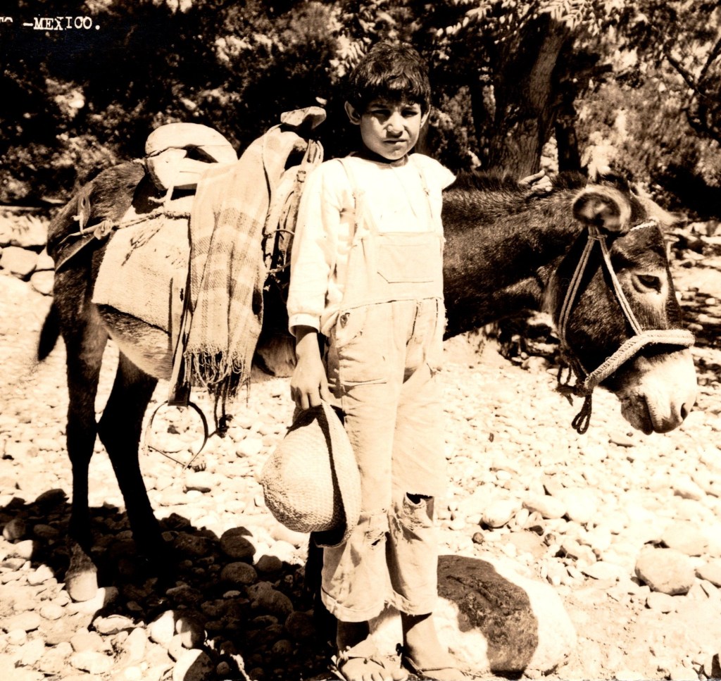 This vintage real photo postcard features a little boy sitting in a goat cart while the rest of his family is beside him, sitting in a donkey cart. The entire family are posing for a souvenir photograph while visiting Happy Hollow, located in Hot Springs, Arkansas. The city of Hot Springs is located in the Ouachita Mountains and has several natural hot springs in the area. Beginning in the 1830’s, Hot Springs became a resort offering many spas. Hot Springs was the place to go for relaxation, fun, and good health. The photo seen on this postcard was taken by N. E. McLeod at his Wild West & Rustic Photography Studio in Happy Hollow. The internet’s Encyclopedia of Arkansas History and Culture informs us that Happy Hollow was another name for McLeod’s Amusement Park. This site was one of Hot Spring’s most popular tourist attractions from the late 1800 until the 1940’s. It’s location was at the head of Fountain Street, just off of Central Avenue and north of Hot Springs Mountain. Happy Hollow was owned and operated by photographer Norman McLeod from the time of its founding (1888) through 1908. McLeod was born on a farm in Georgia . At the age of 19 he moved to Live Oak, Florida where he learned the photography business. He then attended college in Athens, Georgia. He started Happy Hollow as a photography studio and gradually developed it into an amusement park complex which included a zoo. In 1908 he sold the property. The park became known for taking humorous photos of it’s guests. Props included an old bathtub, a burro, and painted scenery which included a jailhouse and a gigantic angry bear. McLeod and Happy Hollow were nationally known. McLeod evidenced much skill in taking this image. The photograph is clear and well-balanced. An added asset is that he was photographing an attractive family. This postcard has an AZO stamp box that dates the postcard between 1904 and 1918. SOLD