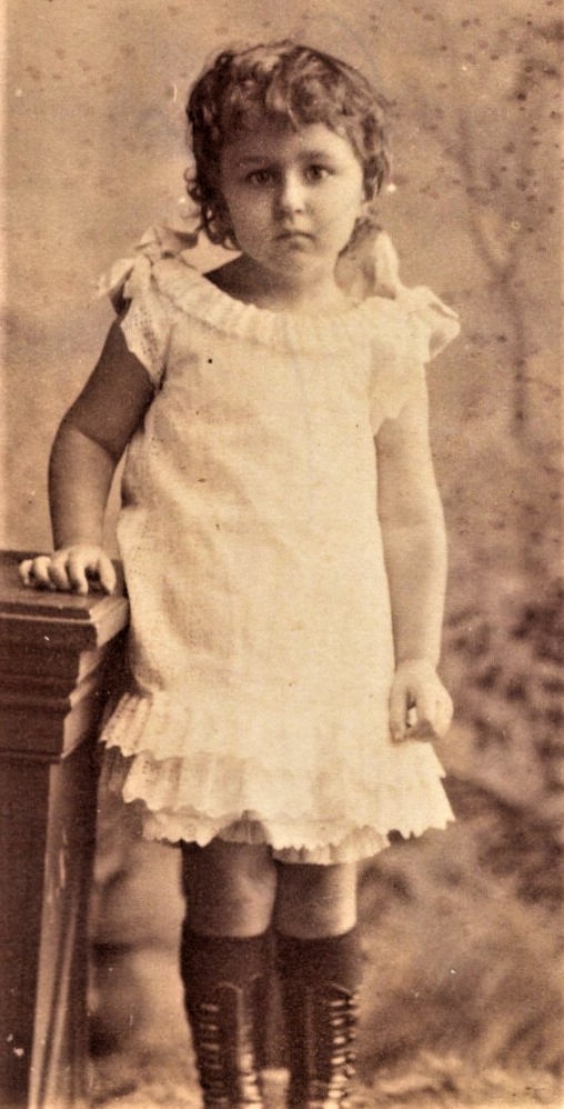 This carte de visite portrait features a most adorable little girl. Someone, likely her mother, has dressed her beautifully. She is standing on a chair without any assistance. There is no belt or hiding mother holding her in place. This cdv photograph was produced by the Stanislas studio in Paris, France. (SOLD)