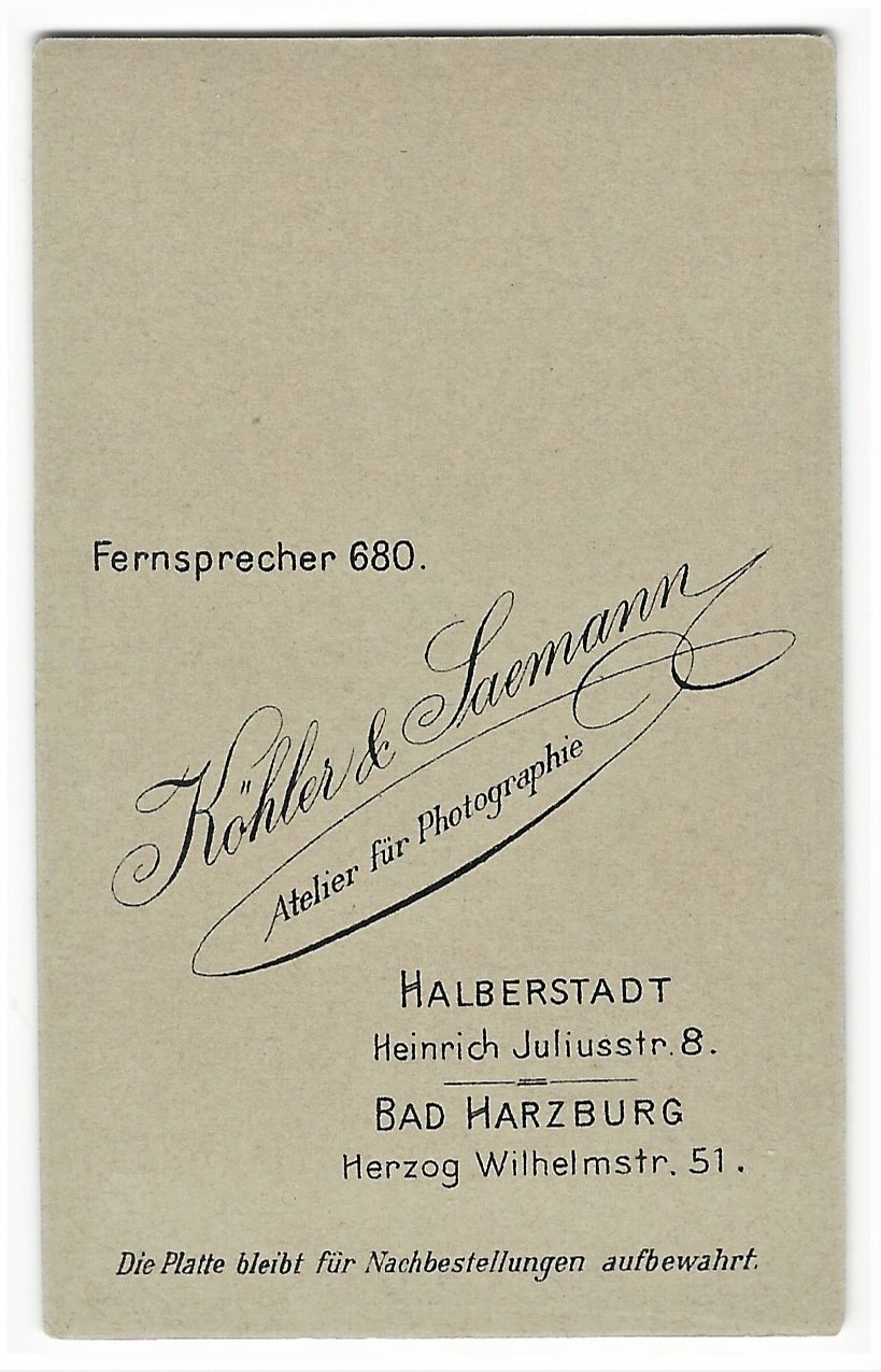 This cartes de visite features a portrait of a handsome young German soldier. He looks sharp in his uniform. The photographer of this image is L. Minzloff and his studio was located in Leipzig-Gohlis, Germany. Gohlis is in the northwest part of Leipzig that was absorbed by Leipzig in 1890. This CDV is in very good condition.