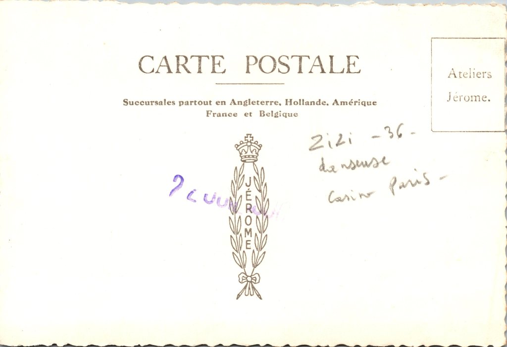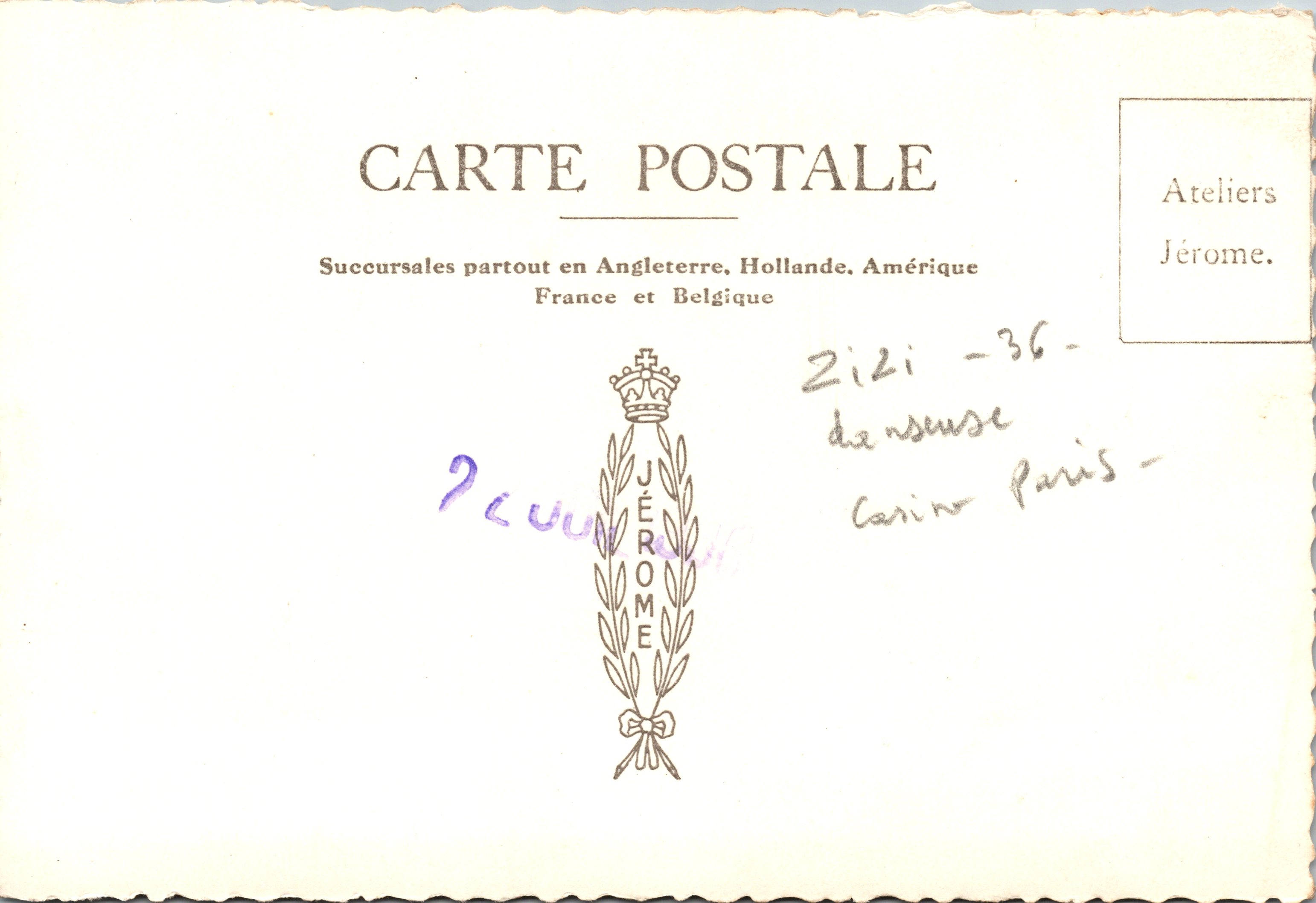 This uncommon, color tinted vintage real photo postcard features a one-name performer named Bijoux. The card is risque for it’s era. Bijoux was a performer at the Casino de Paris and apparently, she was popular enough to merit her own postcard portrait, but not popular enough for me to find information about her online. Bijou was photographed by Lucien Walery. He was a celebrated Paris photographer known for his portraits of artists and cabaret dancers from the city’s music halls. He is very well known for his portraits of Mata Hari and Josephine Baker. Walery did a lot of work in the genre of nude/erotic photography. He photographed the beautiful women of Paris between the early 1900’s and the 1920’s. The postcard was published by a combined printing group in Nancy, France. SOLD
