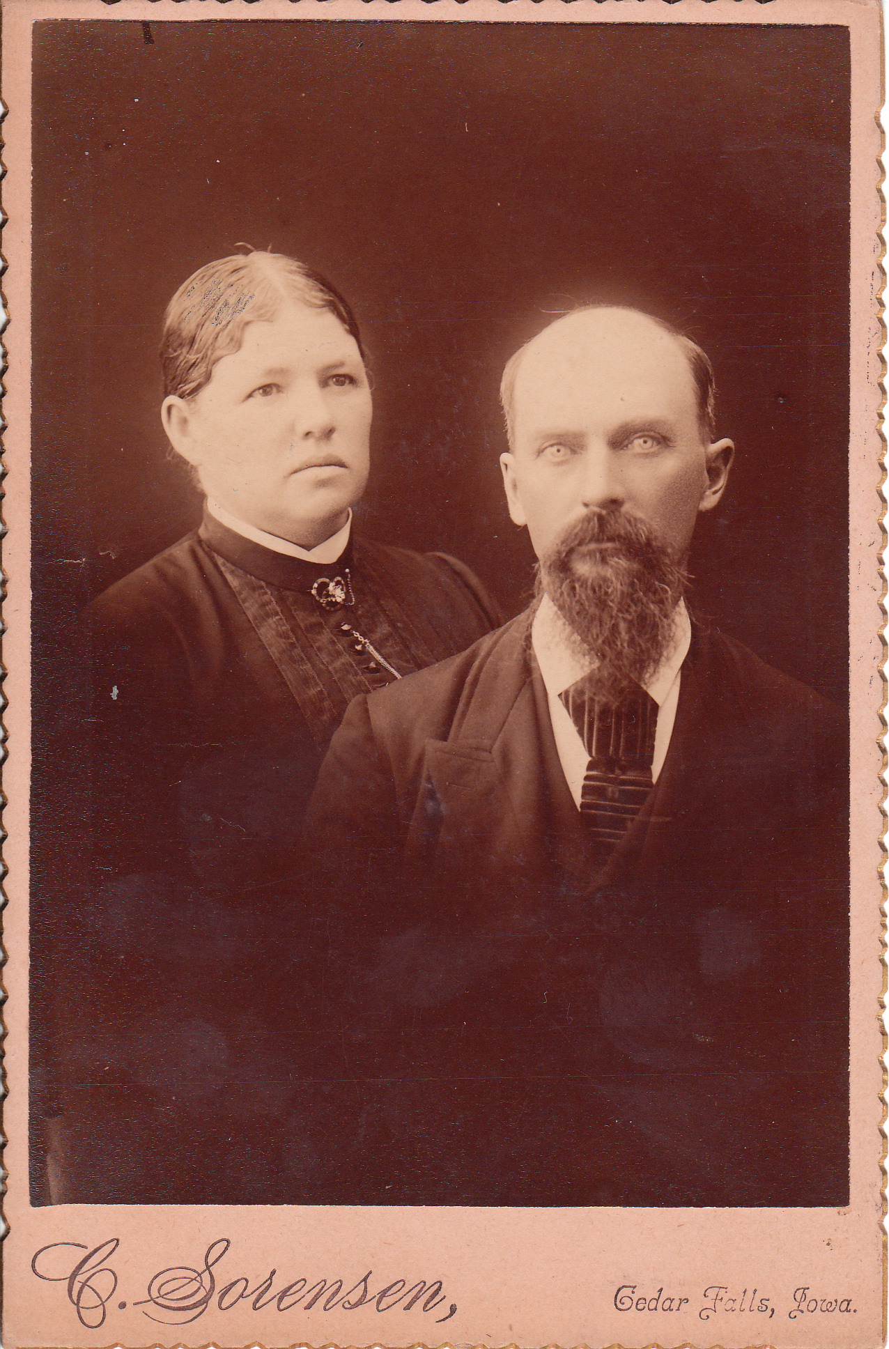 Cabinet cards frequently present interesting mysteries. This cabinet card inspired a number of questions. I wondered what the story was behind this unusual image. The cabinet card was out of the ordinary because of the mini photograph in the left hand bottom corner of the image. The previous owner of the photograph suggested it was a memorial card, but I was dubious. I hypothesized that the image was a graduation portrait and that the buildings in the photo insert was the college from which he graduated. I set out to learn what colleges were located in Cedar Falls, Iowa. I discovered that the University of Northern Iowa is located in Cedar Falls. From 1876 through 1909 the college was called the Iowa State Normal School. The name was changed and between 1909 and 1961, the educational institution was known as Iowa State Teachers College. Further research confirmed my hypothesis. The photo below, from the University of Northern Iowa library web site, shows the same buildings that are in the cabinet card photograph. The building on the left is South Hall (later Gilchrist Hall) and the building on the right is North Hall (later Central Hall). These buildings were located on the campus of the Iowa State Normal School. Research uncovered the photo postcard below which was identified as being from 1885. My initial hypothesis seems to be correct. This cabinet card is most likely a graduation picture. The subject in the image had just graduated from the Iowa State Teachers College. The cabinet card’s photographer was named Hahnemann Lancaster and he was located in Cedar Falls. The reverse of the photograph has printing advertising that Lancaster had won two first place prizes at both the 1884 and 1886 Iowa State Fairs. Lancaster (born in 1858) was 41 years old when he appeared in the 1900 US census. He was born in Canada. He was married to Sarah (age 39) and the couple had two sons and three daughters at the time of the census. This cabinet card portrait has “gold” edges and is in excellent condition (see scans). (SOLD)