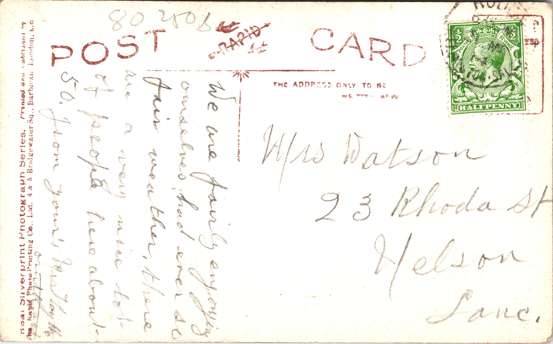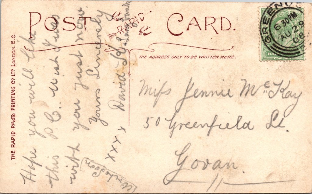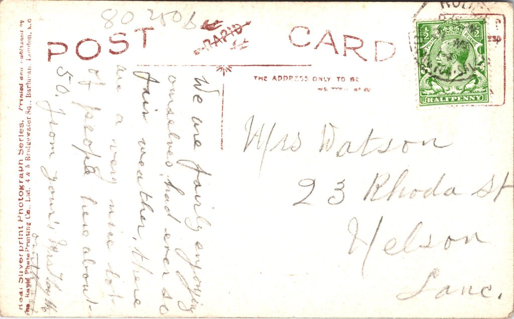 Postcard 2 was also taken by Lallie Charles . This photograph was published by Rapid Photo Co. as part of a series (no.4228).The card was postmarked in 1908.