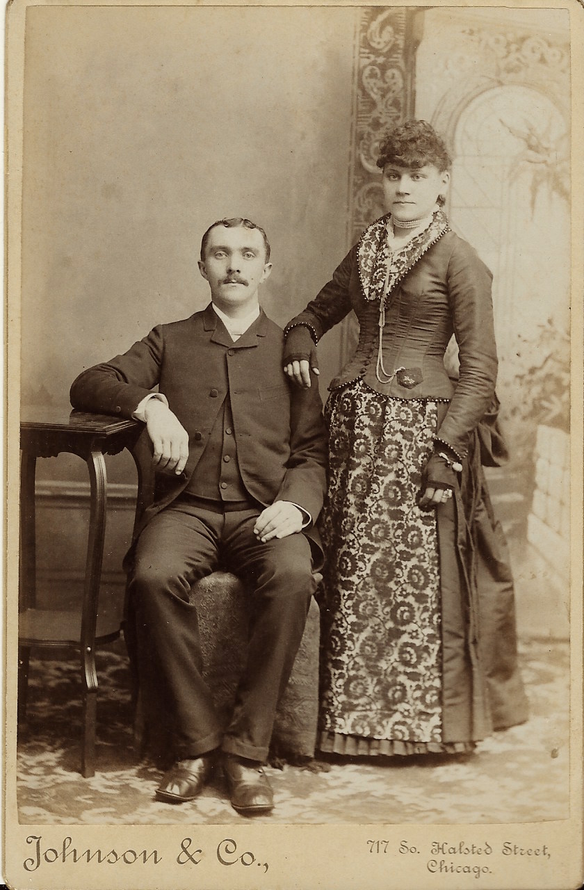 The photographer of this wonderful vintage photograph is J. Edgar Waters who operated a studio in Chicago, Illinois. The three children seen in this image are wearing harlequin costumes. Harlequin was the best known of the comic servant characters from the “Italian Commedia dell’arte. The character was introduced in the late 16th century and represents a light heartedness and even devilish (trickster) nature. Overtime the character took on more of a romantic role. Photographer J. Edgar Waters wrote an article for a business magazine. “The Magazine of Business” (1915) contains an article entitled “The One-Man Business”. In the article, Waters provides practical advice about business record keeping. To learn more about this photographer and to view more of his photographs, click on the category “Photographer: Waters”.