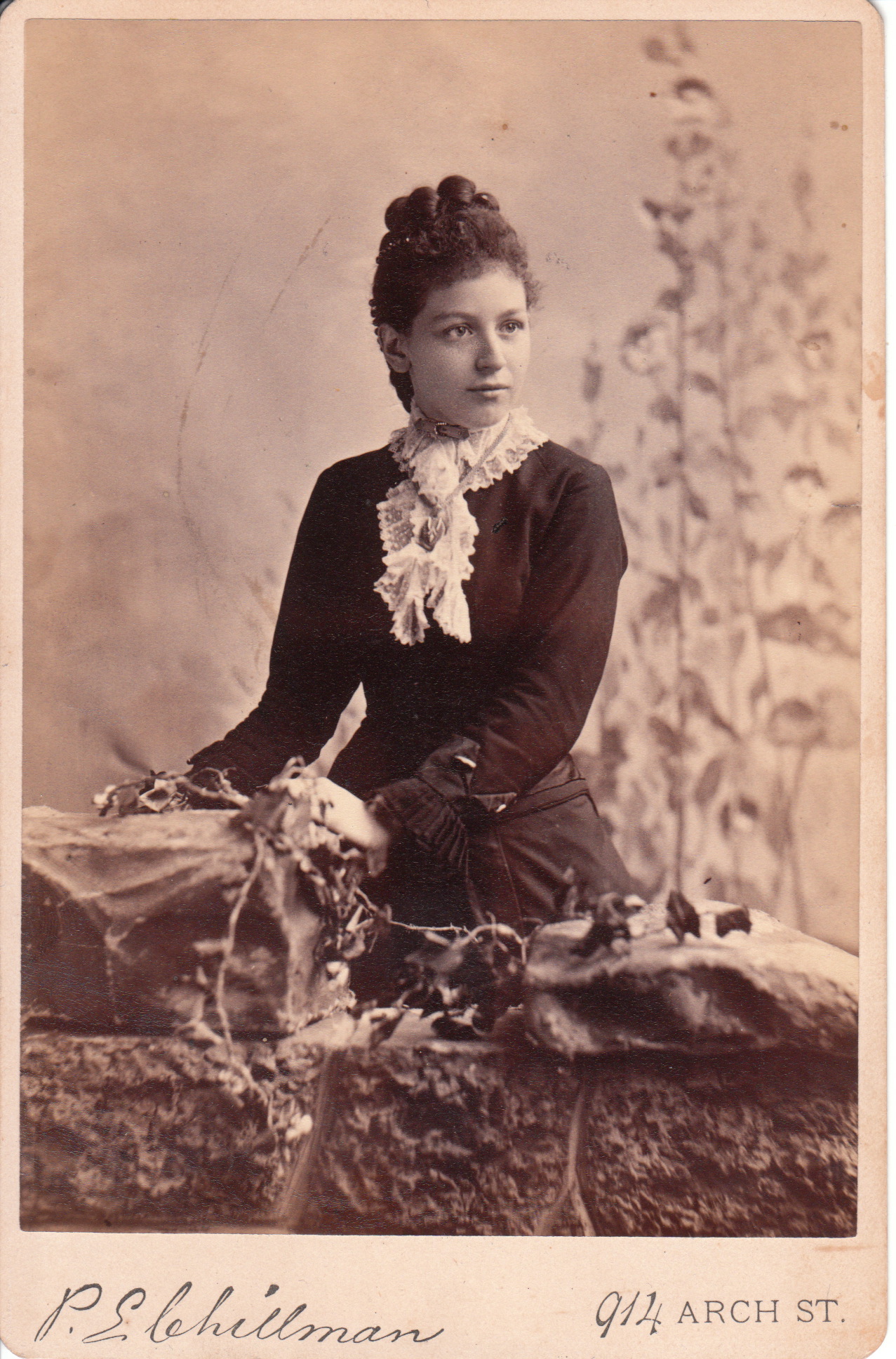 A pretty woman poses for her portrait at the Chillman Studio in Philadelphia, Pennsylvania. The wasp waisted woman is beautifully dressed and with the assistance of a corset, has a terrific figure. The photographer, Phillip E. Chillman’s obituary appears in the Bulletin of Photography (1915). Chillman died in 1915 at the age of 73. He was a pioneer of photography in Philadelphia. He opened his studio on Arch Street in the early 1860’s. He held many photography patents. During his 15 year retirement he took up and excelled at water coloring. His work was exhibited at Pennsylvania, New York City, and Boston exhibitions. To view other photographs by Chillman, click on the category “Photographer: Chillman”.