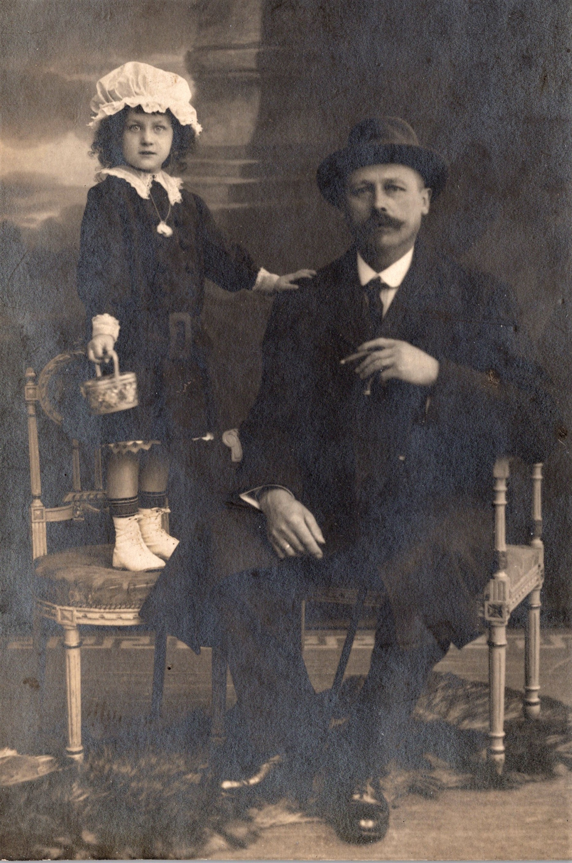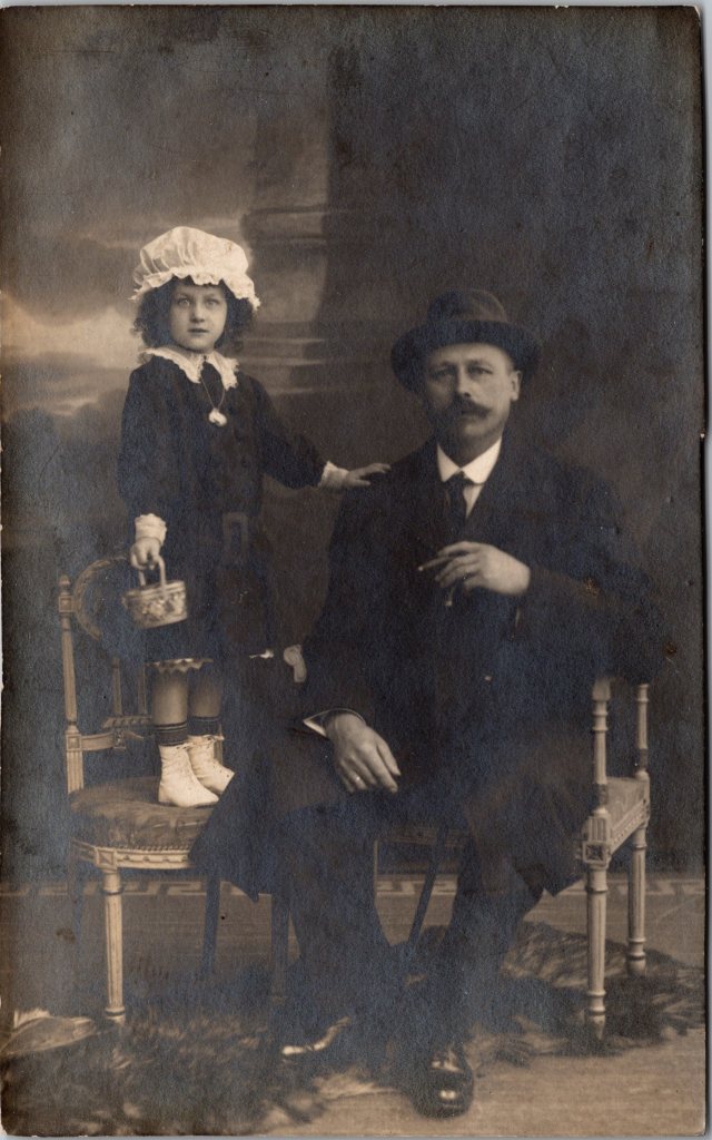 PORTRAIT OF A FATHER AND HIS ADORABLE YOUNG DAUGHTER : LITTLE LADY : RPPC
