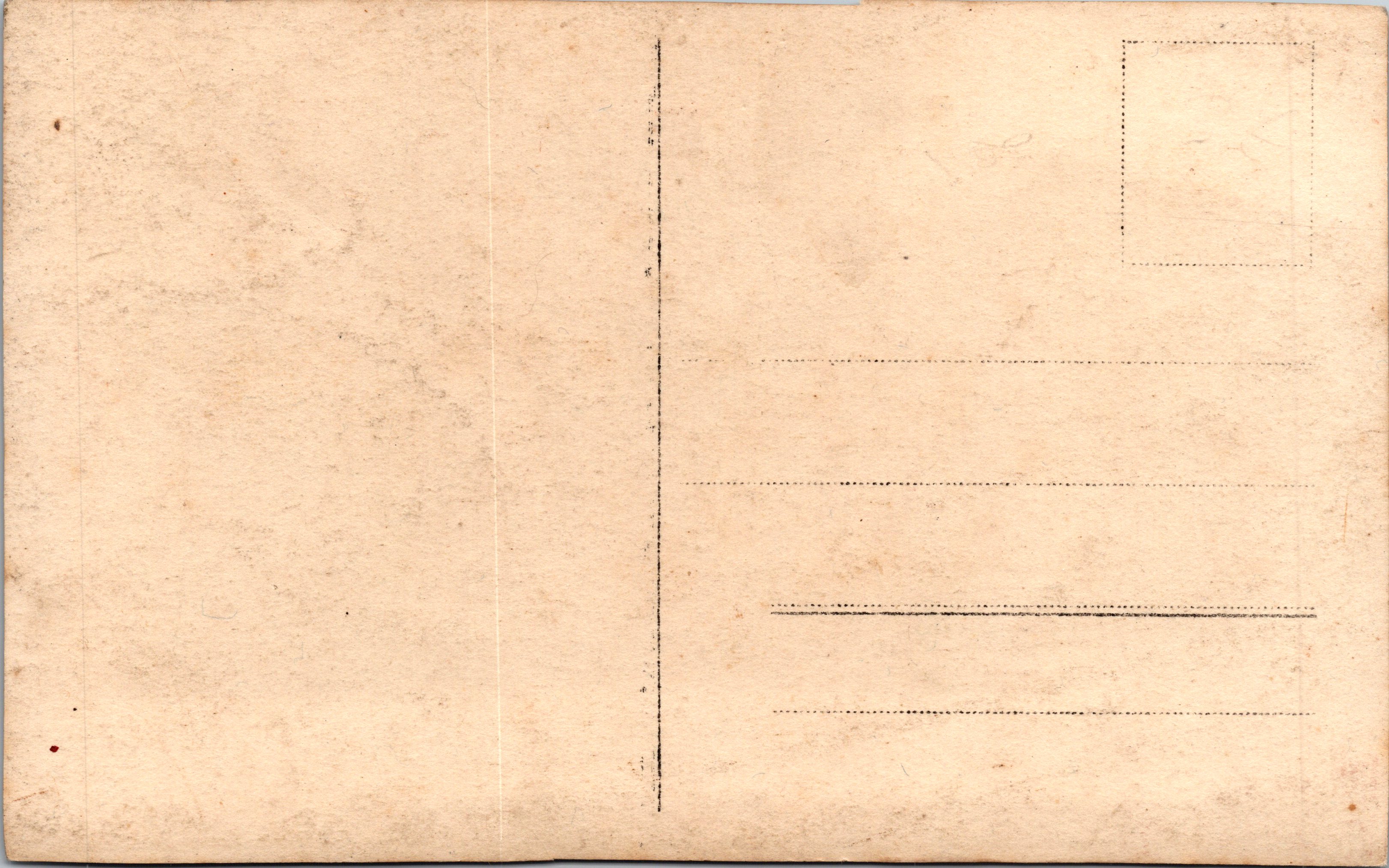 This vintage real photo postcard features five men in their hiking attire. They certainly don’t seem to be wearing very comfortable clothing for a hike. I hope there was no scrambling or navigating slippery portions of the trail required. If so, their suit pants won’t have a long life span. Other than wearing clothing that may hamper their efforts, the men are well equipped with binoculars and walking sticks. The men have cases for the binoculars and the gentleman all the way on the left has a larger bag slung over his shoulder. The men are also well supplied with smoking materials. Two of the men have cigarettes/cigars and two others are holding a pipe. Interestingly, mustaches must have been in vogue considering that each of the men are wearing one. Hats must have been equally popular. It would be fascinating to know the story of this gathering of outdoorsmen. The former owner of this image believes that the men are tourists, but he offers no supporting evidence. This vintage photo postcard is in very good condition (see scans).