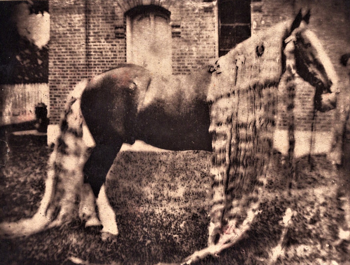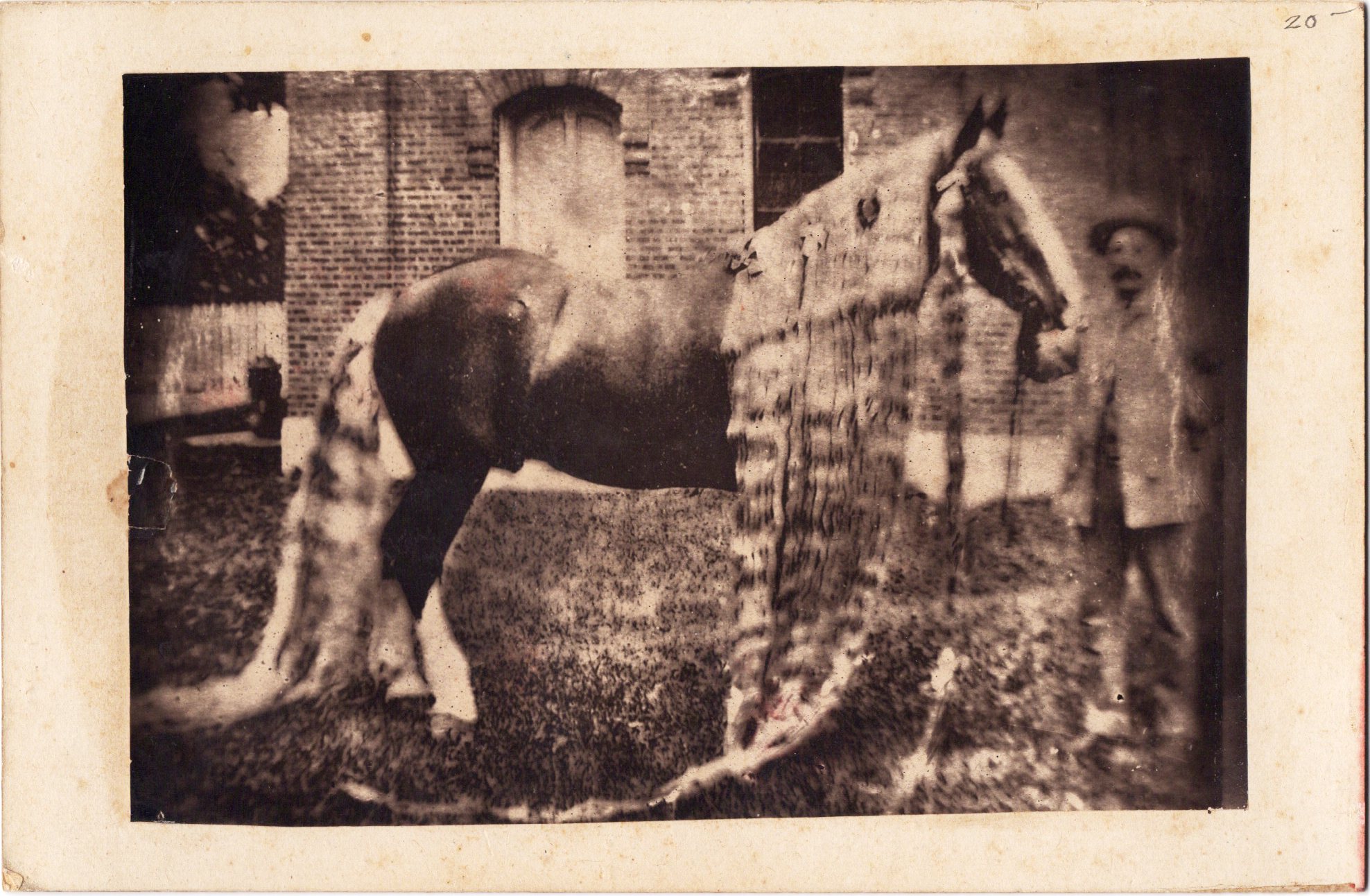 This vintage real photo postcard features five circus dogs posed as if they were begging. The dogs are adorable and the photographer did an excellent job of posing these “talented” canines. The caption is in French and roughly means “Doggies Right Alignment”. The photograph is by the famed Albert Bergeret (1859-1932), a leading French postcard producer. Printing on the front of the postcard lists the studio as being located in Nancy. A postmark on the card indicates that it was mailed in 1902. To view other examples of Bergeret’s work and to learn more about him, click on the category “Photographer: Bergeret”.