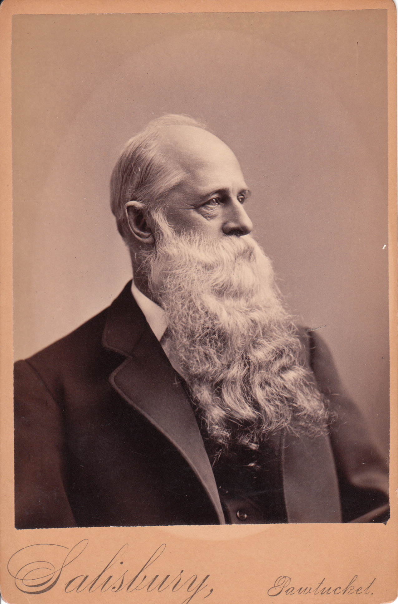 The Salisbury studio in Pawtucket, Rhode Island produced this cabinet card portrait of an elderly man with a long white beard. His beard is very impressive but one wonders how he ate without wearing his food. To view other interesting beards click on the category “Beards (Only The Best)”. The photographer was Arnold F. Salisbury. His name can be found in many Pawtucket city directories of the 1880’s. At one time his studio was located at 65 Mill Street. He is considered by “Classy Arts” photo history site as one of America’s most productive photographers during the Carte De Visite era (he is among over 200 photographers so designated). Salisbury’s obituary appears in the Bulletin of Photography (1918). In the brief article it is mentioned that Salisbury was a civil war veteran. Further research revealed that he was a private in the 1st Regiment Rhode Island Infantry (company E) for three months in 1861. He later served as a second sergeant in the 9th Regiment Rhode Island Infantry (Company A) and as a first lieutenant in the 12th Regiment Rhode Island Infantry (Company H).