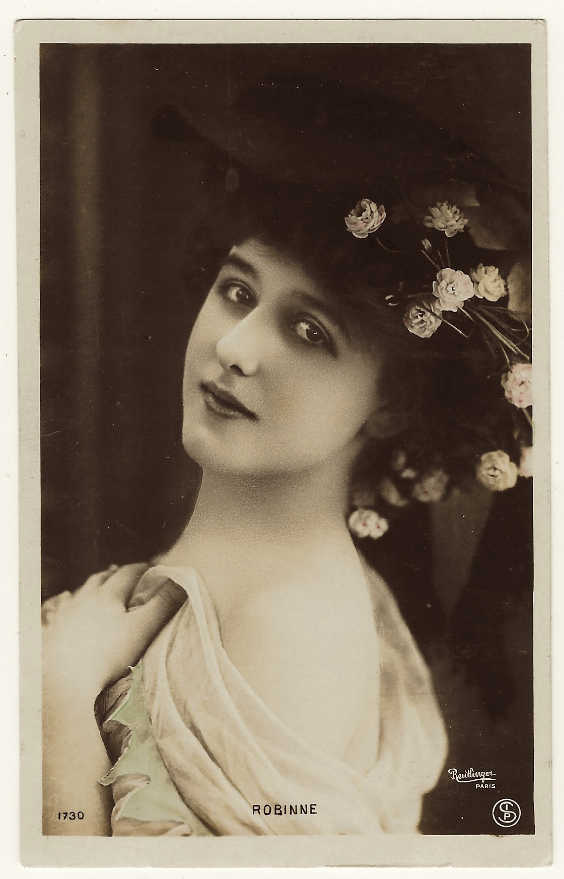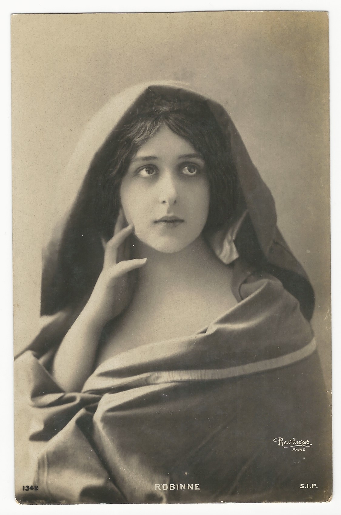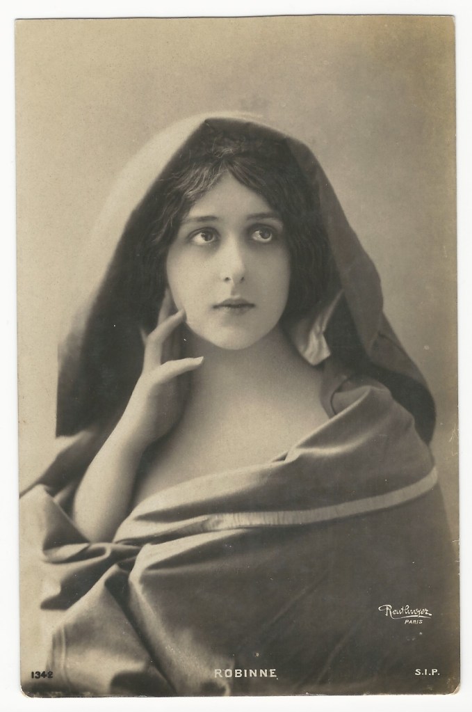 Postcard 3 has a portrait of Robinne photographed by Leopold Reutlinger (1863-1937). He was a leading photographer of his time and was, and is, renowned for his photographs of celebrities and beautiful women. This postcard is part of a series (no.1282). This postcard is in fair condition (see scans).