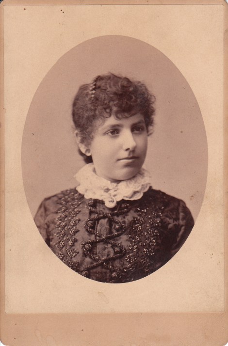 The pretty lady in the beaded dress is a congressman’s wife. Her husband is one of the freshman congressmen that just arrived in Washington D. C. to begin their term. They come to our capitol city flush with hopes of fulfilling their unrealistic campaign promises. It won’t take long for these new lawmakers to figure out that their main focus will be to devise ways to stay in office. Anyway, the lady in this photograph is filled with excitement. She has come to Washington with a different agenda than her idealistic husband. She is looking forward to the teas and the gala events that are so popular in this social city. She is preparing to meet the First Lady. That will be a real treat. Frances Folsom Cleveland is warm and beautiful. Her marriage to Grover Cleveland is quite the story. Grover Cleveland was the law partner of Frances Folsom’s father and knew Frances since her infancy. When Folsom died, Cleveland was the executor of his estate and he oversaw Frances’s mothers finances, as well as Frances’s education. After a scandal in which Cleveland was accused of fathering an illegitimate child; he proposed to Frances. She needed time to consider his offer and left for a European tour which included some considering. She returned to America and accepted his marriage proposal. They married in the White House, and she, at age twenty-one, became the youngest First Lady in American history. Anyway, the fine looking lady in this photograph went to G. W. Davis, to have this image taken. Davis has a studio at 925 Pennsylvania Avenue, in Washington D. C.. He also has a studio in Richmond, Virginia. Here comes the moment of truth. Everything written in this blog entry is accurate with just one exception. That exception concerns the identity of the woman in this photograph. As far as I know, she is not a congressman’s wife. Her true identity has been lost to history.
