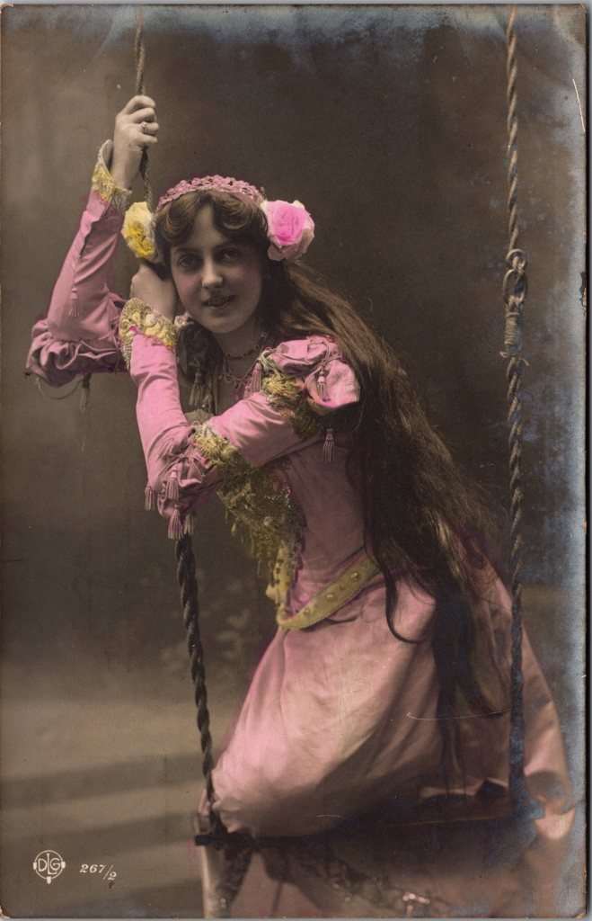 This vintage real photo postcard features French actress, Francoise Arnoul (1931- ). She was born in Constantine, France (now Algeria). Her mother was a stage actress and her father was an artillery General. She moved to Paris in 1945 and studied acting. She was “discovered” by director Willy Rozier. In 1949, she received a major role in the film, “L’Epave (The Wreck)”). She also starred in such films as “Forbidden Fruit” (1952), “French Cancan” (1954), and “Testament of Orpheus” (1960). She made her American film debut in “Companions of the Night” (1954). She later acted in television shows. Her IMDb filmography includes 95 credits between 1949 and 2016. This postcard was postmarked in 1960 in Pula, Croatia. SOLD