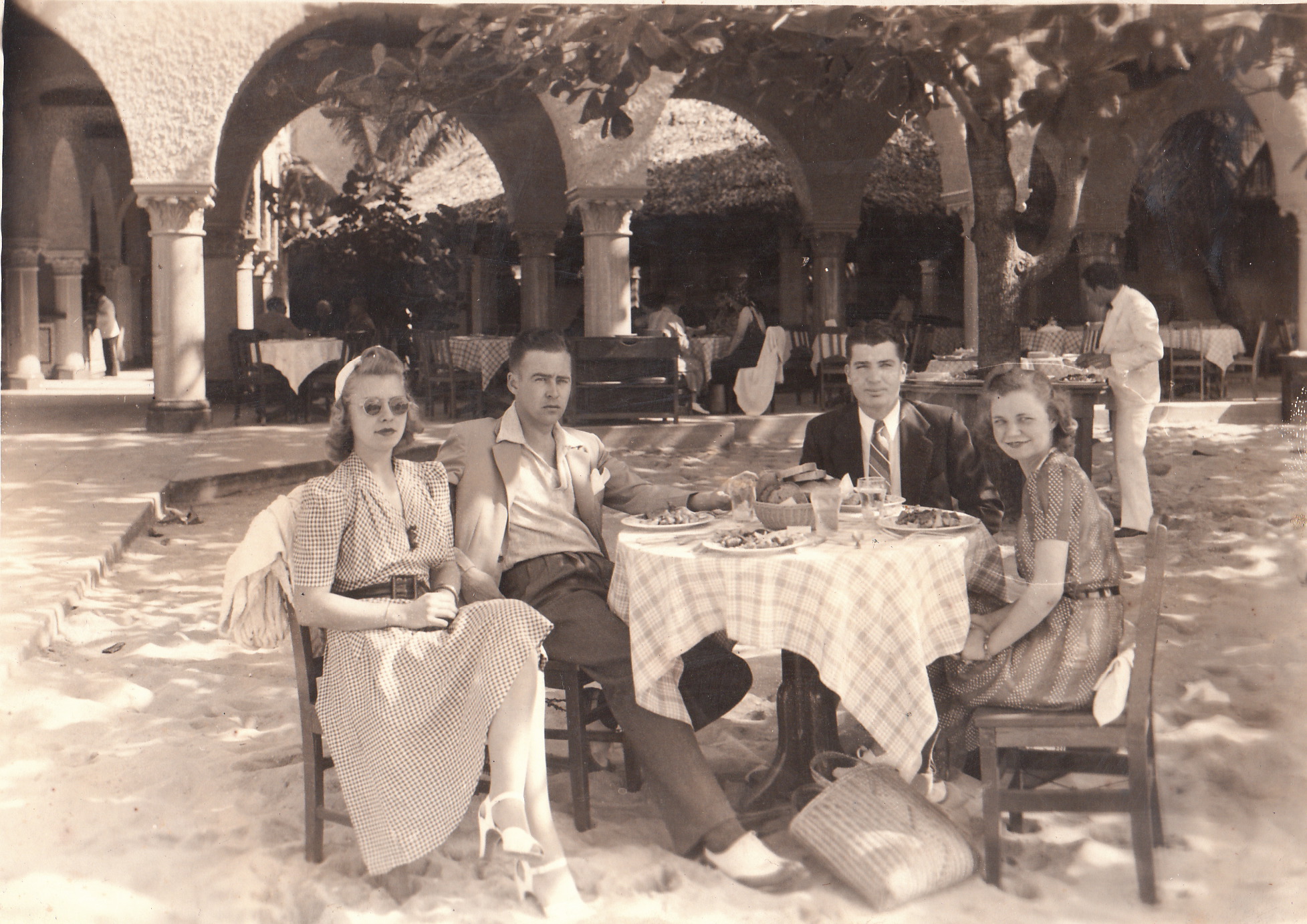 TWO GANGSTERS AND THEIR MOLLS ENJOY DINNER ON THE BEACH IN HAVANA, CUBA