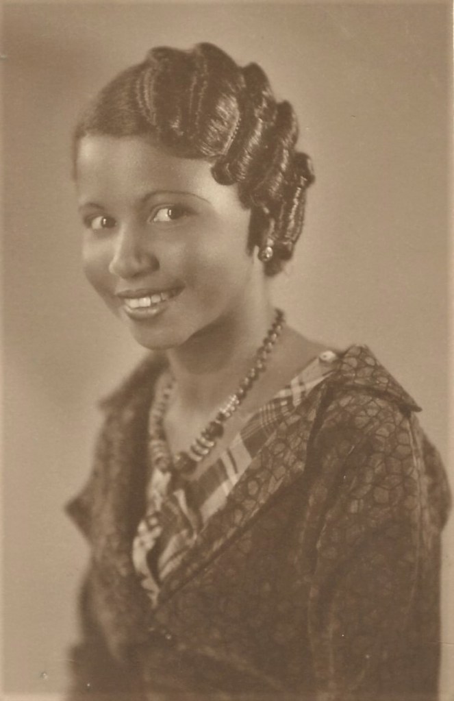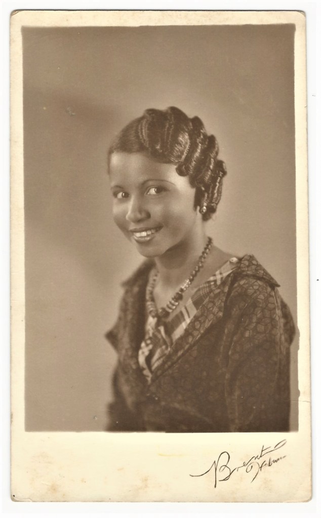 This vintage real photo postcard features a pretty young Black woman photographed at the Brent Studio in Havana, Cuba. She has a beautiful smile. There is an inscription written in Spanish on the reverse of the postcard. The stamp box on the card indicates that it was published by EKKP, a firm that existed between 1904 and 1950.   SOLD