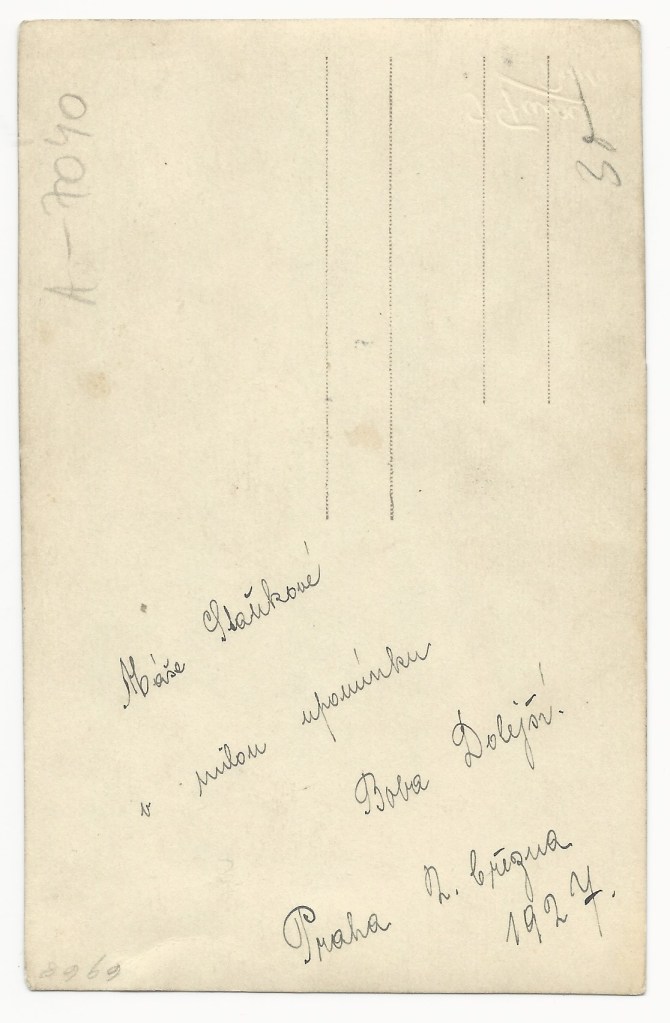 This vintage real photo postcard features two pretty women wearing their national costume. The portrait offers more questions than answers. What country does this attire represent? Slovakia? Russia? Is the woman in the lighter colored dress, a bride? Hopefully, a visitor to the Cabinet Card Gallery, will offer the answer to these questions. At the very least, maybe a visitor will be able to make an educated guess in regard to the women’s nationality. This photo postcard is in very good condition (see scans).
