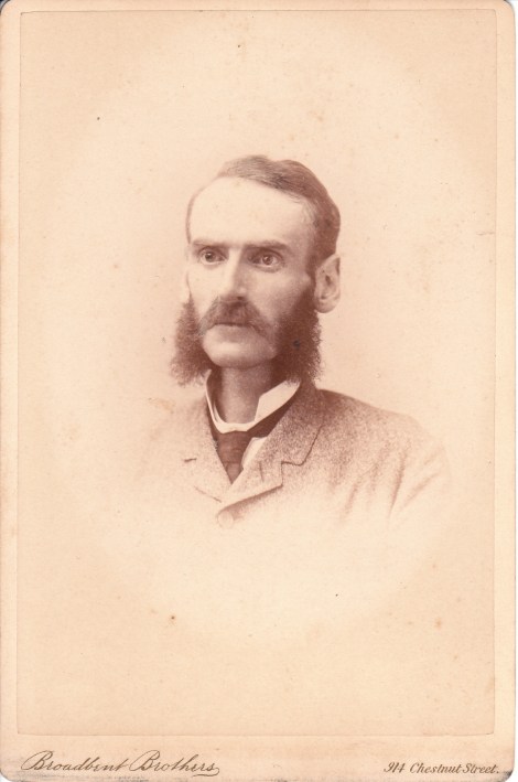 A gentleman poses for this cabinet card portrait at the studio of the Broadbent Brothers in Philadelphia, Pennsylvania. The man has formidable bushy sideburns. The reverse of the cabinet card identifies the subject as John R. Elliot and indicates the photograph was taken in 1886. The Broadbent Brothers were the sons of prominent daguerreotype photographer, Samuel Broadbent. The elder Broadbent was in partners with W. Curtis Taylor in the photography business. Samuel Broadbent died in 1880 and Taylor then partnered with Sam’s sons until they bought out the business in 1884. To see other photographs of interesting facial hair, click on this site’s category of “Beards (Only the Best)” or “Mustaches (Only the Best)”.