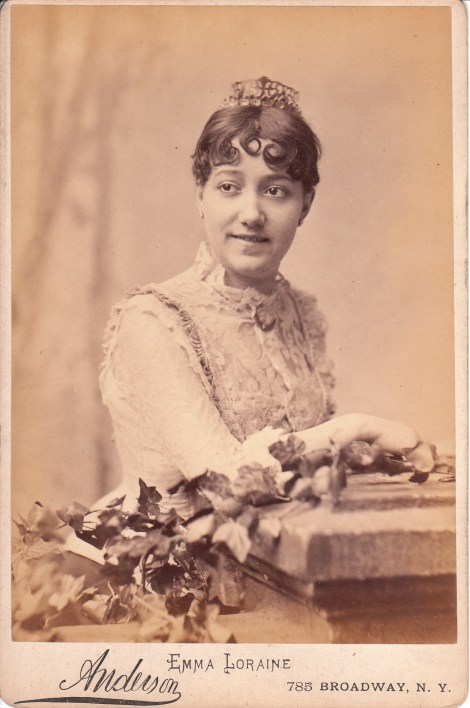 This cabinet card photograph features a profile view of a pretty young woman. She is wearing a high collar blouse and jacket. The young lady’s hair is worn up in a sweep and she is wearing earrings. The photograph was produced by the Carpenter Photographic Rooms in Kansas City, Missouri. Marion S. Carpenter was a daguerreotypist in Dayton, Ohio in 1850. He than conducted his photography business in Cincinnati at the Palace Art Studio between 1857 and 1865. During the Civil War he was a staff photographer for the United States Government. He photographed Abraham Lincoln on three occasions. After the war he went to Kansas City, Missouri where he continued to operate a photography business. The Bulletin of Photography (1913) notes his passing at age 84 while living in Kansas City. The notification indicates that he was still actively involved in business in 1913, the year of his death.