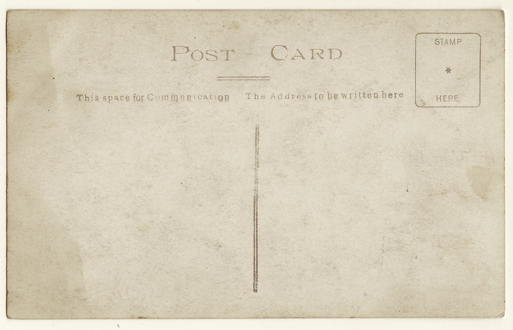 A lovely young couple pose with their baby and their dog in a family portrait photograph. It is not clear whether the photo was taken outdoors, or in a photo studio. Writing on the reverse of the postcard indicates that the message was written in 1913. The postcard was sent to someone in Paris, France. SOLD