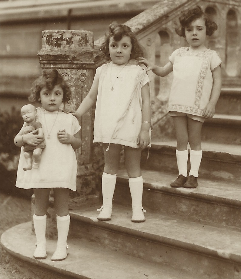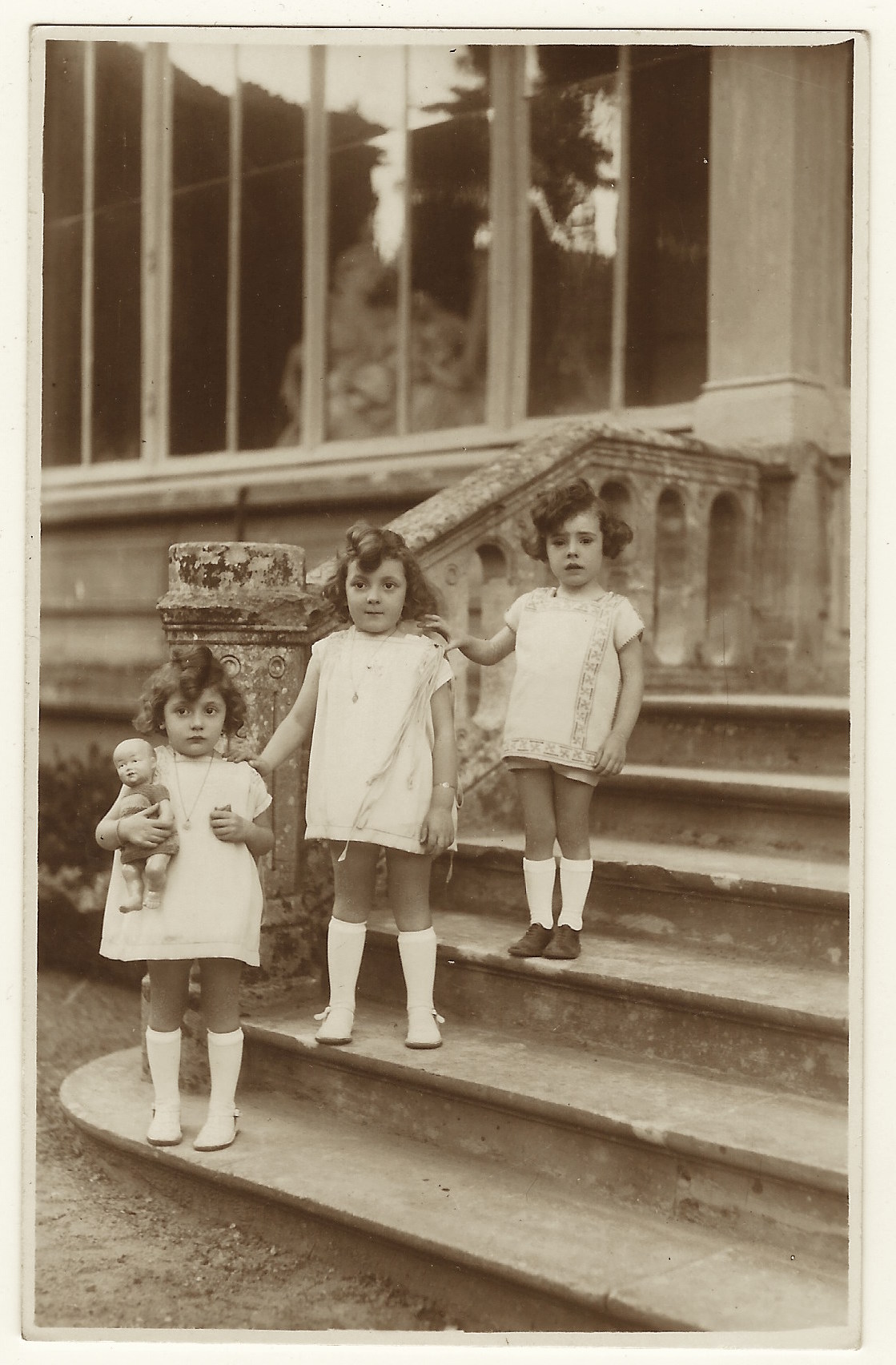 TRIO OF CUTIES : THREE LITTLE GIRLS POSING ON THE STEPS OF A MUSEUM