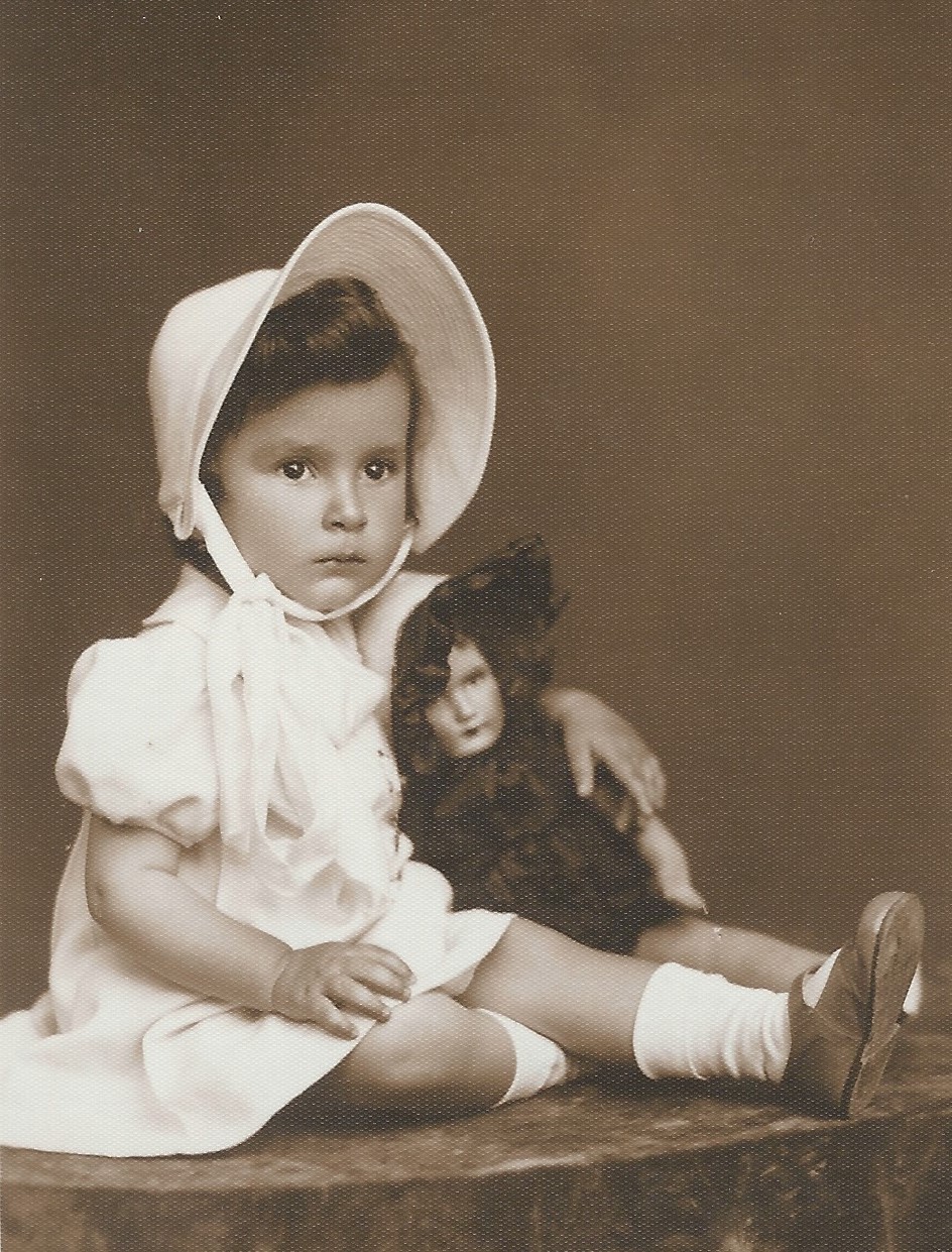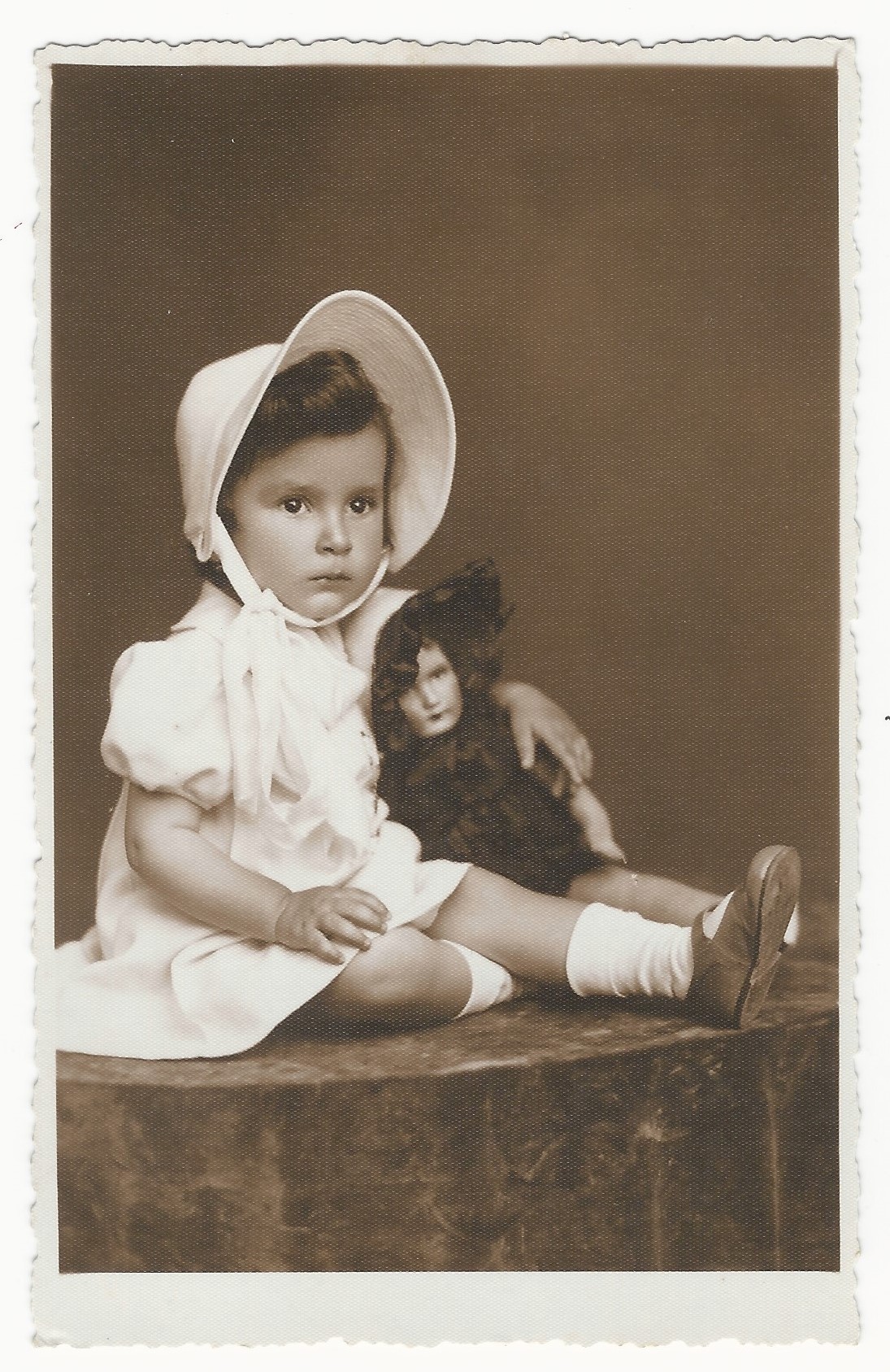 PORTRAIT OF A LITTLE GIRL WEARING A BONNET : HOLDING A DOLL OR PUPPET (1939)