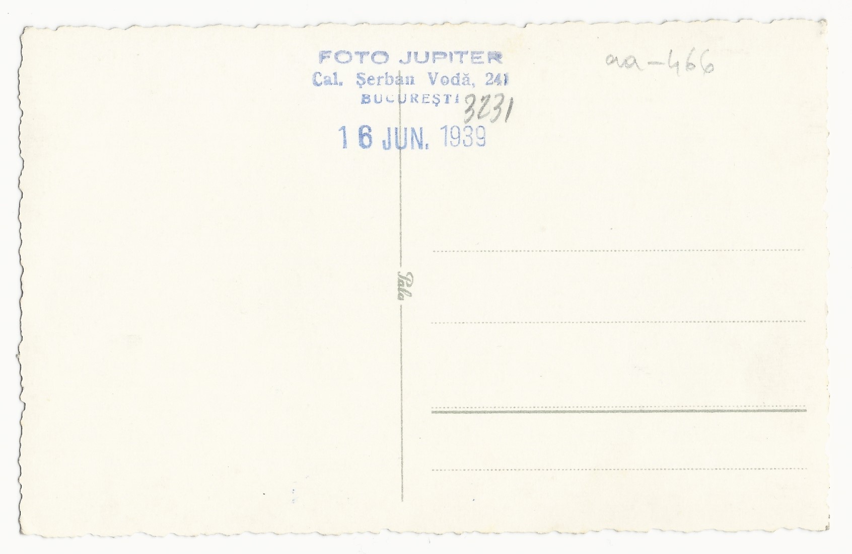 This vintage real photo postcard features an adorable little girl holding a doll. It is possible that the doll may actually be a marionette puppet. Note the child’s bonnet as well as her apprehensive expression. A stamp on the reverse of the card reveals that the child was photographed by the Jupiter studio in Bucharest, Romania. The photo was taken in 1939. This vintage postcard has excellent clarity and is in excellent condition.