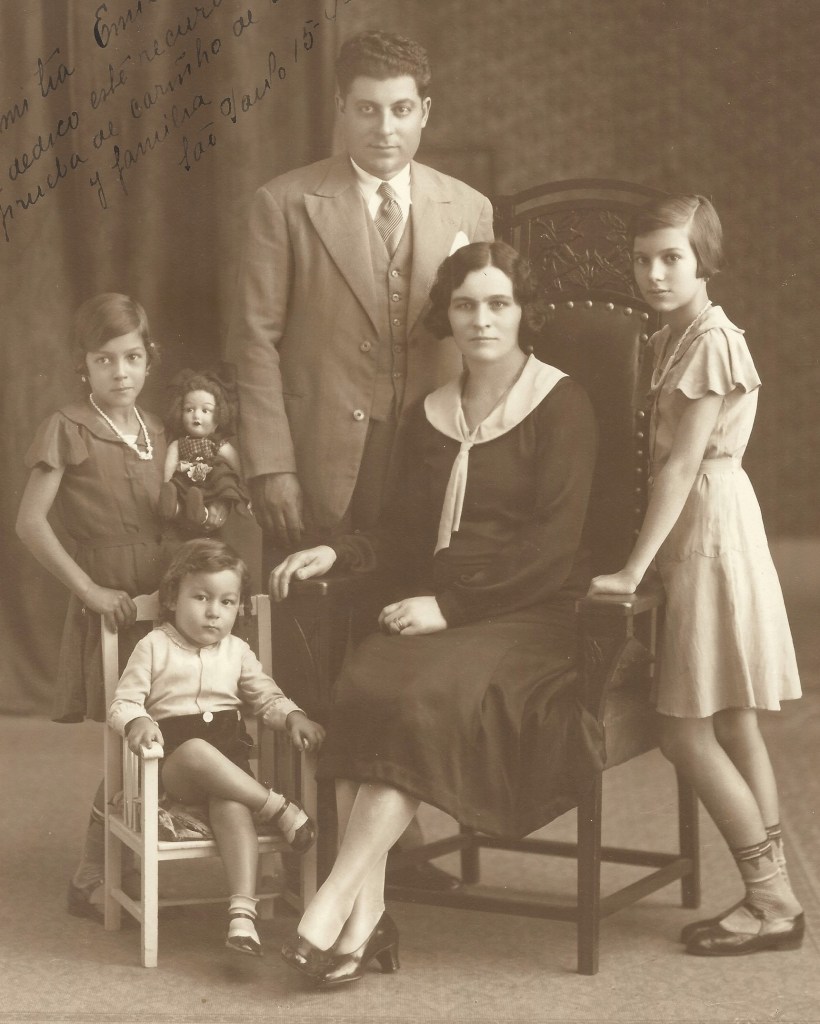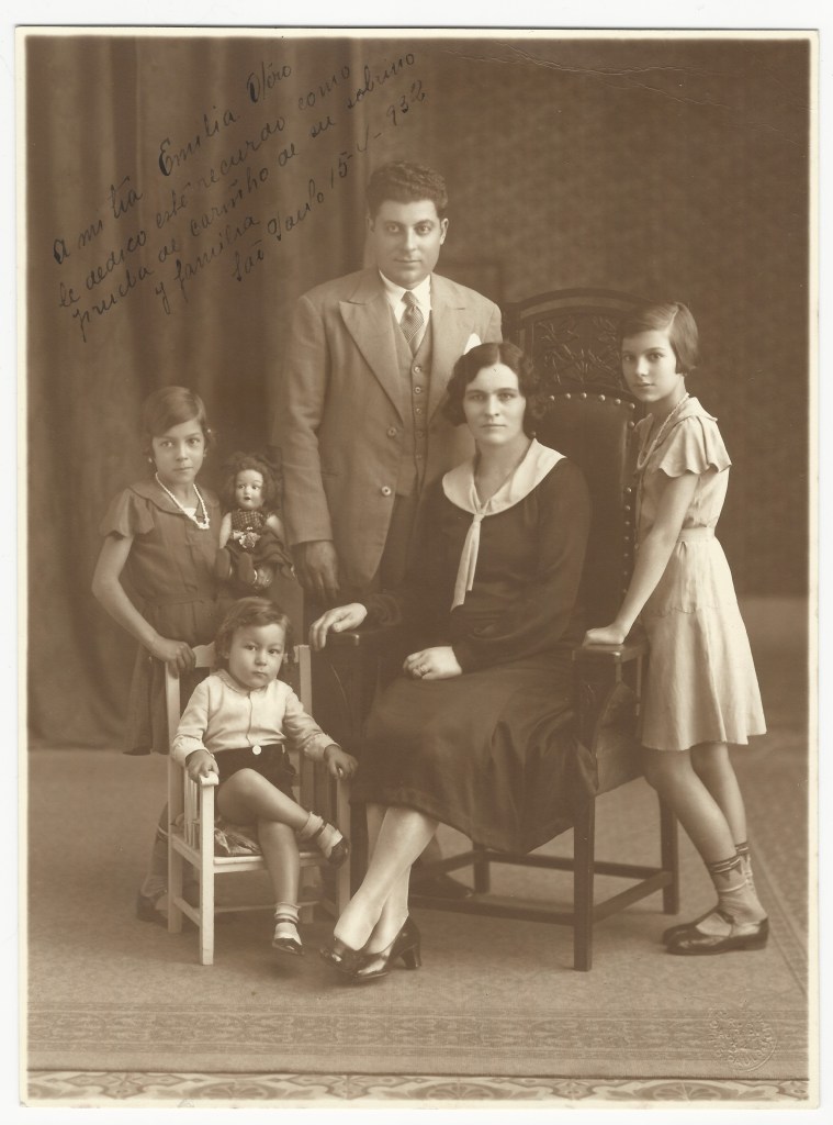 FAMILY PORTRAIT : CHILD HOLDING DOLL : VINTAGE PHOTO : SAN PAOLO, BRAZIL (1932)