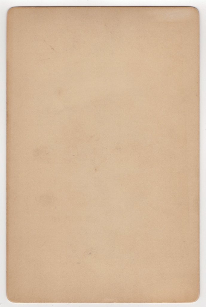 This cabinet card features a bow tied young boy posing with two drums in the studio of A. W. Gilfillian, in Ferndale, California. The reverse of the card has an inscription that identifies the subject as Arthur Robinson, who was “part of a traveling minstrel show” during the late 1800’s. The inscription also dates the photograph “before mom’s visit in 1895”.