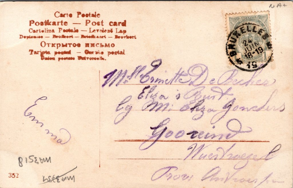 In Postcard 2, Wehlen is beautifully dressed for the portrait appearing on the postcard. She looks a bit clownish with her ruffled collar. There are flowers pinned to the front of her dress and she is wearing a jumbo feathered hat. She has a beautiful smile. The card was published by EAS as part of a series (no.1868/2). The firm was located in London and New York. The postcard was printed in Germany. Interestingly, the word “imperfect” is printed in two places on the front of the card. The word “chic” appears in the upper right hand corner of the image. Emmy Wehlen fits the bill. She is truly chic. The message on the postcard indicates that it was written in 1913. (SOLD)