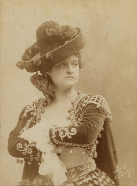 This cabinet card portrait features comic opera star, Helen Bertram (1869-1953). As I researched her life, I became more and more interested in her experiences and character. She was a person who’s life itself was a drama. More on that later. She was one of America’s leading prima donnas of her era. Bertram was born in Illinois. Her father was a wealthy grain merchant. She trained at the Cincinnati College of Music and at age 20 began working as a lead singer for a number of opera companies, including Abbott, Conried, and the Bostonians. In fact, she worked for many opera companies because she tended to switch allegiances when offered better salaries. She had much impact on comic opera. Influential roles in “The Gingerbread Man” and “The Prince of Pilsen” contributed to that impact. The St. Paul Daily Globe (1887) printed a review about a very early Bertram performance with the Abbott company. The review states that she sang with ‘such exquisite art as to win the hearts of her audience”. The article also describes Miss Bertram as a brilliant debutante in opera, and states that she had an “exceedingly handsome face, pretty figure, graceful movement, and sweetness”. Her off-stage life was tumultuous and her scandals were covered closely in American newspapers. Plainly said, her personal life was a disaster. In 1893, news articles revealed that she and actor, Edward Henley, were having an affair. Both were married and their affair caused both of their spouses to file for divorce. At first Bertram denied her extramarital relationship saying “Oh my! Mr Henley has had so many sweethearts, it seems too bad that I should be made the scapegoat for all this.” In 1894, Bertram and Henley announced plans to marry. They were not married long because Henley died. The St. Louis Republic (1901) reported that Bertram had thrown a locket containing Henley’s ashes off a balcony. The rationale for pitching the ashes was that she had fallen in love with another man. Bertram denied tossing the ashen remains of her husband. In 1903 she married her third husband, matinee idol Edward Morgan. He had a sensational history of stormy marriages and relationships. At some point in time, Bertram had a relationship with George d’essauer, a wealthy French nobleman. George got himself into some trouble concerning a forgery scandal. After being indicted, he fled to Europe were he was arrested for other charges. The St. Louis Republic (1905) ran an article about Bertram being taken to court for unpaid bills. She claimed she was bankrupt as the reason for non payment. In 1906, her third husband, Edward Morgan died. He died from a fall in his hotel room, but the coroner theorized that the fall was due to his well known morphine addiction. From 1908 into the 1930’s she announced several retirements only to return to the stage. Later roles included vaudeville and concert tours with provincial orchestras. Bertram also had a movie career and the IMdB lists her as appearing in three movies including “The Lightening Conductor” (1914) and “Rhythm on the River” (1940). Back to the cabinet card seen above. The studio that produced this photograph was the Aime Dupont gallery. Dupont (1842-1900) founded his photography business in 1886 in New York City, New York. He was formerly a sculptor and he was of Belgian origin. His American wife, Etta Greer, was also a photographer. She was well respected for he work as a portraitist of opera singers in Paris, France. She was educated in Paris and spent much of her childhood there. She also met and married Dupont in Paris. The couple was very talented and they became very popular as portrait photographers in New York. Among their society and celebrity clients were many singers who were appearing in New York. After Dupont’s death, his wife, and later his son (Albert), operated the studio. His wife kept the name of the studio the same, after the death of her husband. In 1906, the Metropolitan Opera hired its own official photographer, resulting in diminished portrait work in that sector. The studio went bankrupt in 1920.
