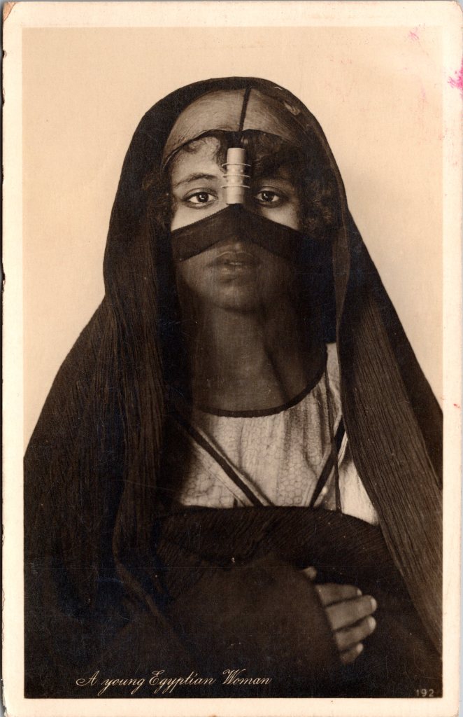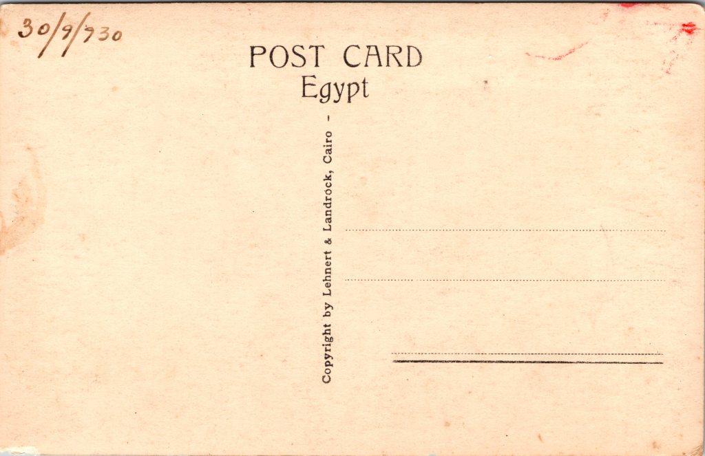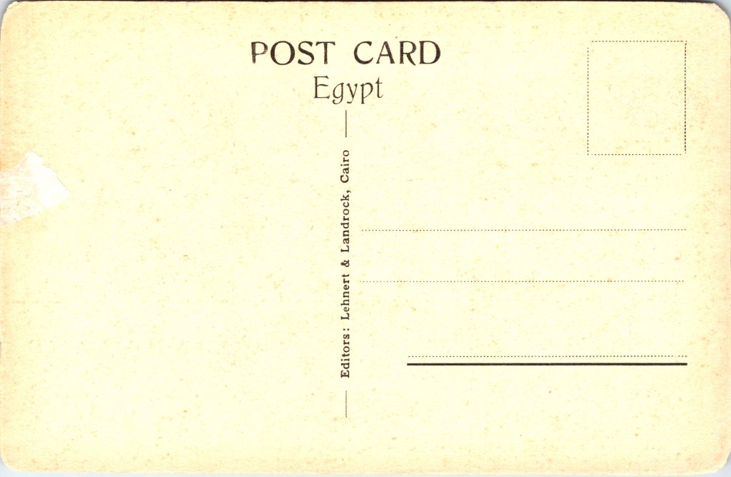 This vintage postcard features a “Bedouin Beauty” with wonderful smile. Everything she is wearing is interesting. Her traditional dress, the flowers in her hair, and her necklace are all intriguing. This postcard offers some sexual provocativeness which was typically seen in ethnographic postcards from this era. It seems that if women from other cultures, or non white ethnicities, were photographed for postcards, than some nudity was acceptable. Western photographers, postcard publishers, and postcard consumers all appear to have been “suffering” from ethnocentrism. The woman in this photo, as stated earlier, is a Bedouin. Bedouins are a group of nomadic Arab people. Historically, they have inhabited the desert regions in the Arabian Peninsula, North Africa, Iraq, and the Levant. This image was produced by the team of Rudolf Franz Lehnert (1878-1948) & Ernst Heinrich Landrock (1878-1966).