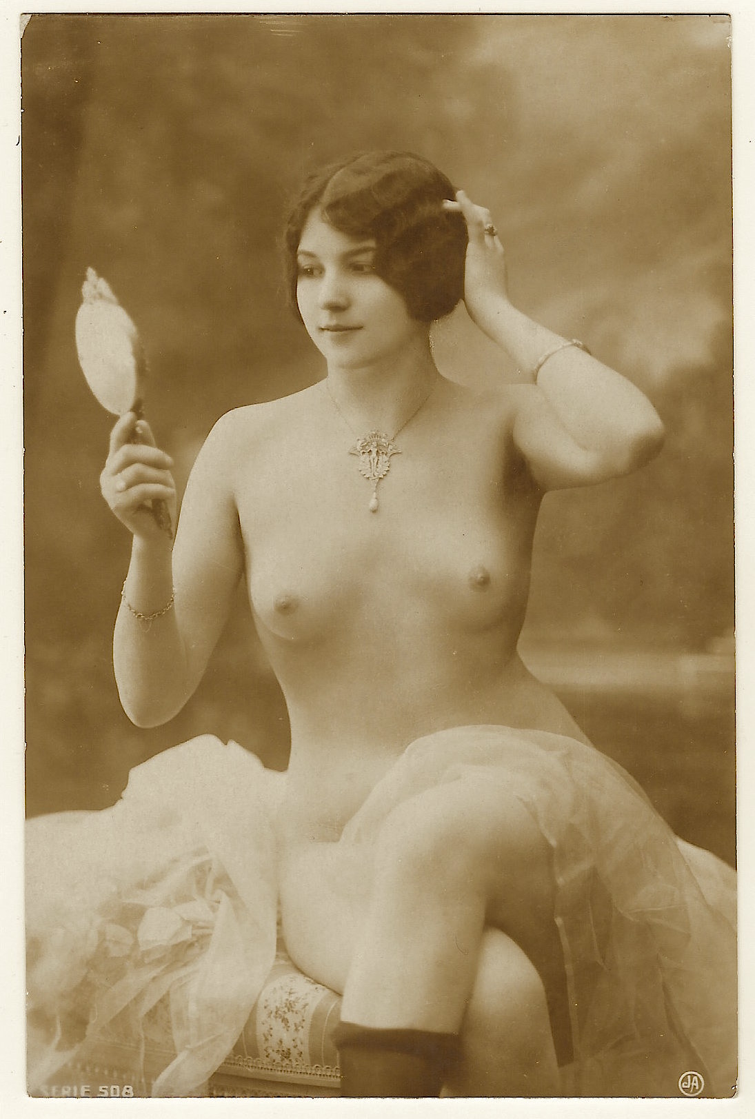 Postcard 2 was published by Ross Verlag (no.5035/2). Miss Jana’s photograph was taken by the Manasse studio in Vienna, Austria. The Manasse studio was in existence between about 1922 and 1938. The studio was run by Olga Solarics (1896-1969) and her husband Adorja’n von Wlassics (1893-1946). Olga was known for her interest in photographing nudes. The studio flourished in Vienna during the 1930’s. Many of the portraits taken by the studio had an erotic flavor. The studio attracted some of the leading ladies of film and theater. (SOLD)