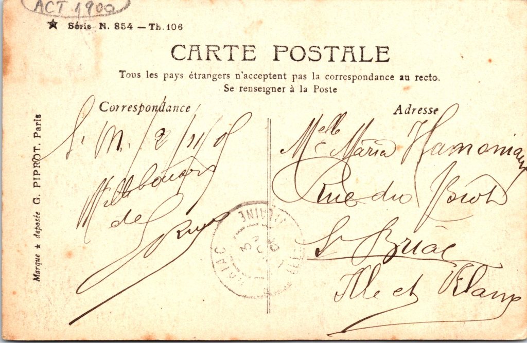 Postcard 3 This postcard was published by G. Piprot,  of “Etoille” or “Star” publishing in Paris. The card is part of a series (No.758).  SOLD