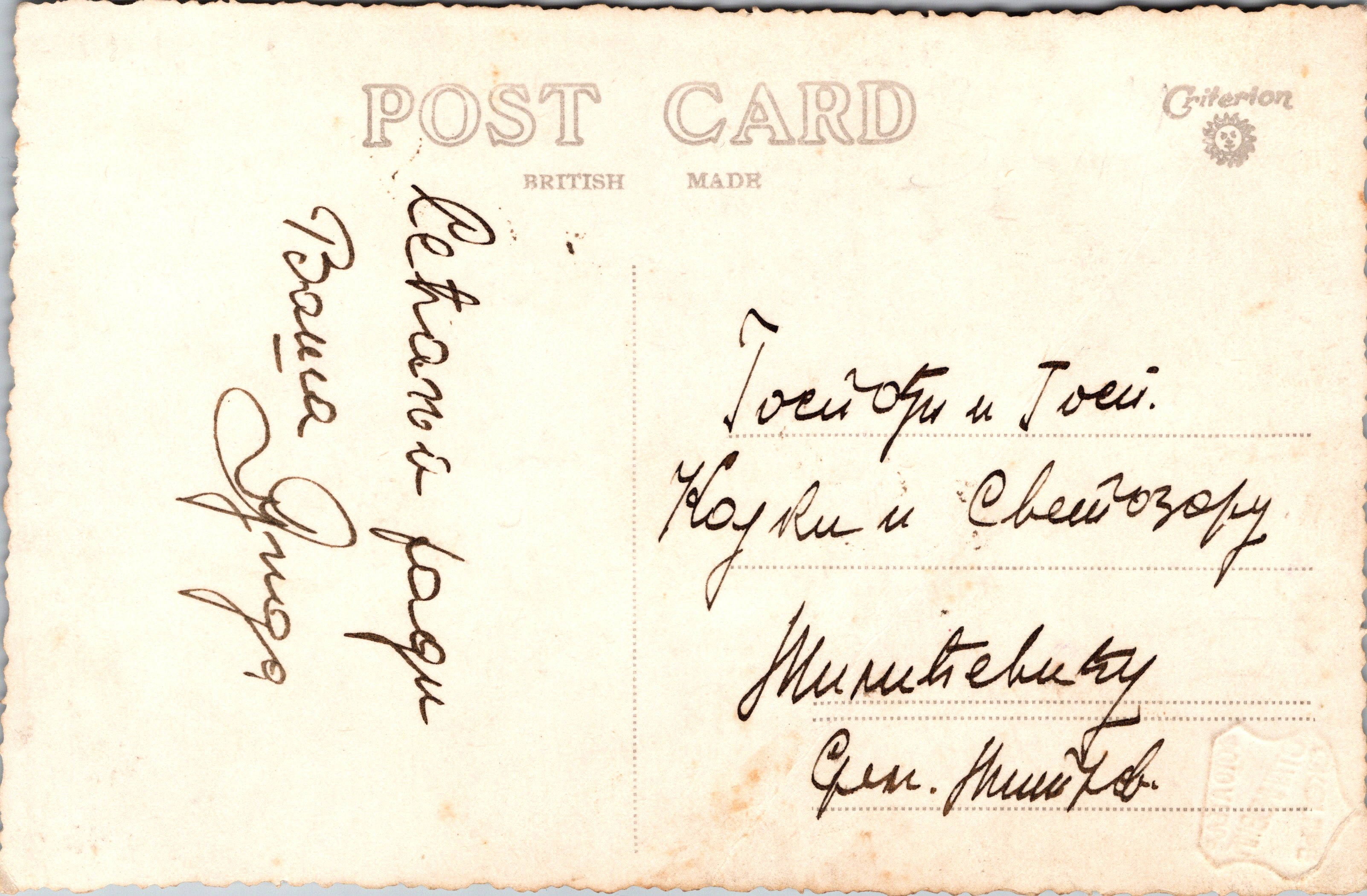 This vintage real photo postcard features two pretty fashionable young women. They are wearing beautiful clothing. They are dressed very much alike. This postcard presents a few mysteries. What country is the home of these women? What is their relationship? Why are they dressed similarly? What can we learn from the “Criterion” stamp box? The bottom right hand corner of the image has an embossed photographer’s stamp? Can the words be deciphered? In regard to the message on the reverse of this postcard; what language is it written in? This postcard is in very good condition (See Scans).