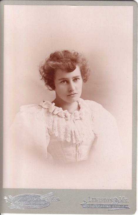 This photographic portrait features a pretty young lady posing for her portrait at the Flagg and Plummer gallery in Lewiston, Maine. The subject has quite the sour expression on her face. She looks exasperated, as if she has spent more time and effort at the photographer than she cared to. A pencilled inscription on the reverse of the photograph reveals that the Flagg and Plummer studio was the successor to the Curtis and Ross studio. The notation also discloses that the young woman in this photograph was named Florence L. Bisbee and that the image was produced in 1899. According to the U.S. Census of 1900, Florence Bisbee was born in 1877 and lived in Auborn, Maine. She lived with her father (Byron), mother (Adiline), and two older brothers. Florence worked as a dry goods clerk, her father was a grocery clerk, and her brothers worked as shoe cutters. By the 1910 census, Florence was employed as shoe stitcher and in the 1920 census she was still living with her parents at the age of forty-three. The 1930 census found her as a head of household and living with an older woman. She was still a shoe stitcher. Very little information could be found about this photographs creators. The Flagg and Plummer studio is mentioned in an article in The Bulletin of Photography (1915) concerning the formation of an advertising group of photographers.