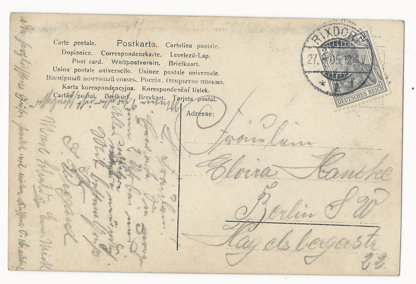 The beautiful woman seen on this vintage real photo postcard is Miss Paulette. I have been unable to find biographical information about her. The former owner of this photo postcard identified her as Miss Paulette and stated she performed in Paris at the Folies Bergere, a cabaret music hall established in 1869. This portrait of the actress is risque for it’s era but it is certainly tastefully done. In an attempt to identify this actress, I came across the five postcards seen below. I believe that the pretty woman seen in the postcard above is Paulette Del Baye although I lack any concrete convincing evidence. This postcard has a German stamp that is postmarked in Rixdorf (a neighborhood in Berlin). The card was postmarked 1912. The postcard was published by Neue Photographische Gesellschaft (NPG) which was located in Berlin and Stuttgart, Germany.The company was in business between 1894 and 1948. It was founded by Arthur Black (1862-1943) and it became one of the most well known and largest companies involved in the production of postcards. SOLD