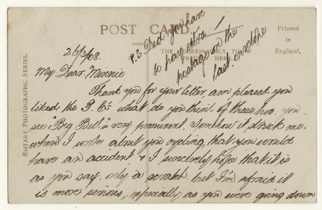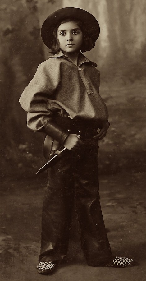 This vintage real photo postcard features child actress, Miss Renee Mayer, posing in character for photographers Foulsham and Banfield. She is photographically captured in her role as Puck in the theatrical production of “The Sleeping Beauty Re-Awakened”. Note the cute little puppy that she is holding. Mayer was a child actress and dancer who made her stage debut in 1910 as the Pearl Fairy in “The Goldfish”. She is most noted for her performance as Puck in three revivals of “Sleeping Beauty” (1912, 1913, 1914). She acted in pantomimes throughout her teenage years and appeared in films in the early 1920’s including “A Bachelor Husband” (1920). Miss Mayer was born in 1900 which informs us that she was somewhere around thirteen years old when she posed for this photograph. The New York Times (1915) mentions Renee Mayer in an article about a play called “Masque of War and Peace”. Looking at the roster of cast members in this production, it becomes clear that the show had an all-star cast. Performers included Mme Rejane, Lily Elsie, Edna May, Viola Tree, Elsie Janie, Lily Langtry and of course Miss Mayer. The show was performed at the Drury Lane Theatre to raise money for “The American Women’s War Relief Fund”. Great Britain’s National Portrait Gallery has twenty real photo postcard portraits of Miss Mayer. Three of the images are photographs by Foulsham and Banfield and published by Rotary Photo (just like the image above). This postcard is part of the Rotary Photographic Series (no. 6924 B) and was printed in Britain.