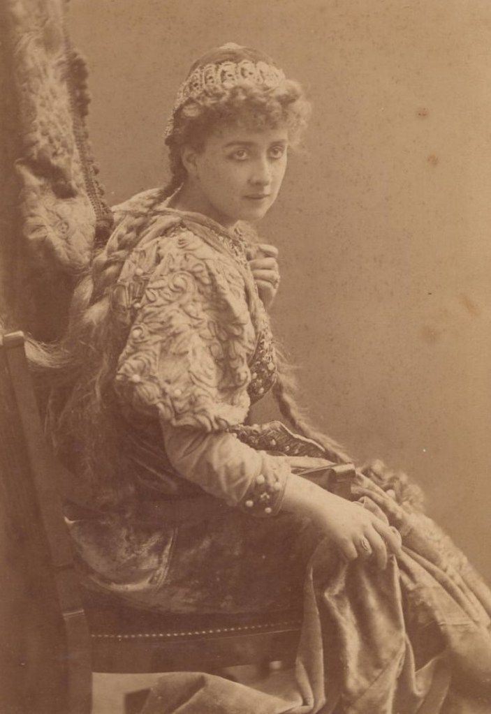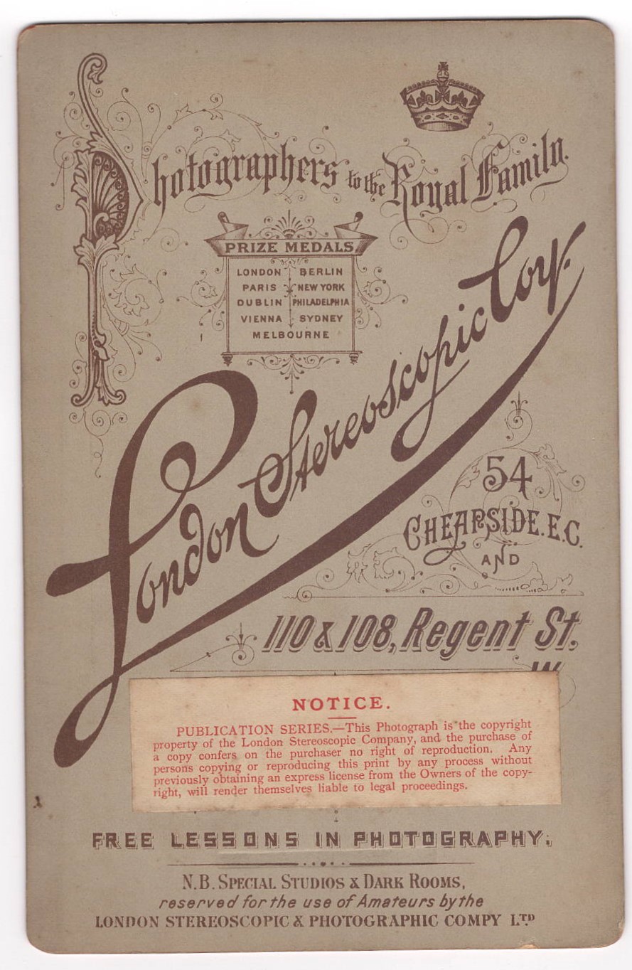 Postcard 2 shows the beautiful and well dressed Miss Orme peeking out from behind a curtain. The photographer is Alexander Bassano (1829-1913) who was a leading royal and high society photographer located in London. This postcard, like the first was published by Rotary Photo and is part of the Rotary Photographic Series (no. 1933 I).