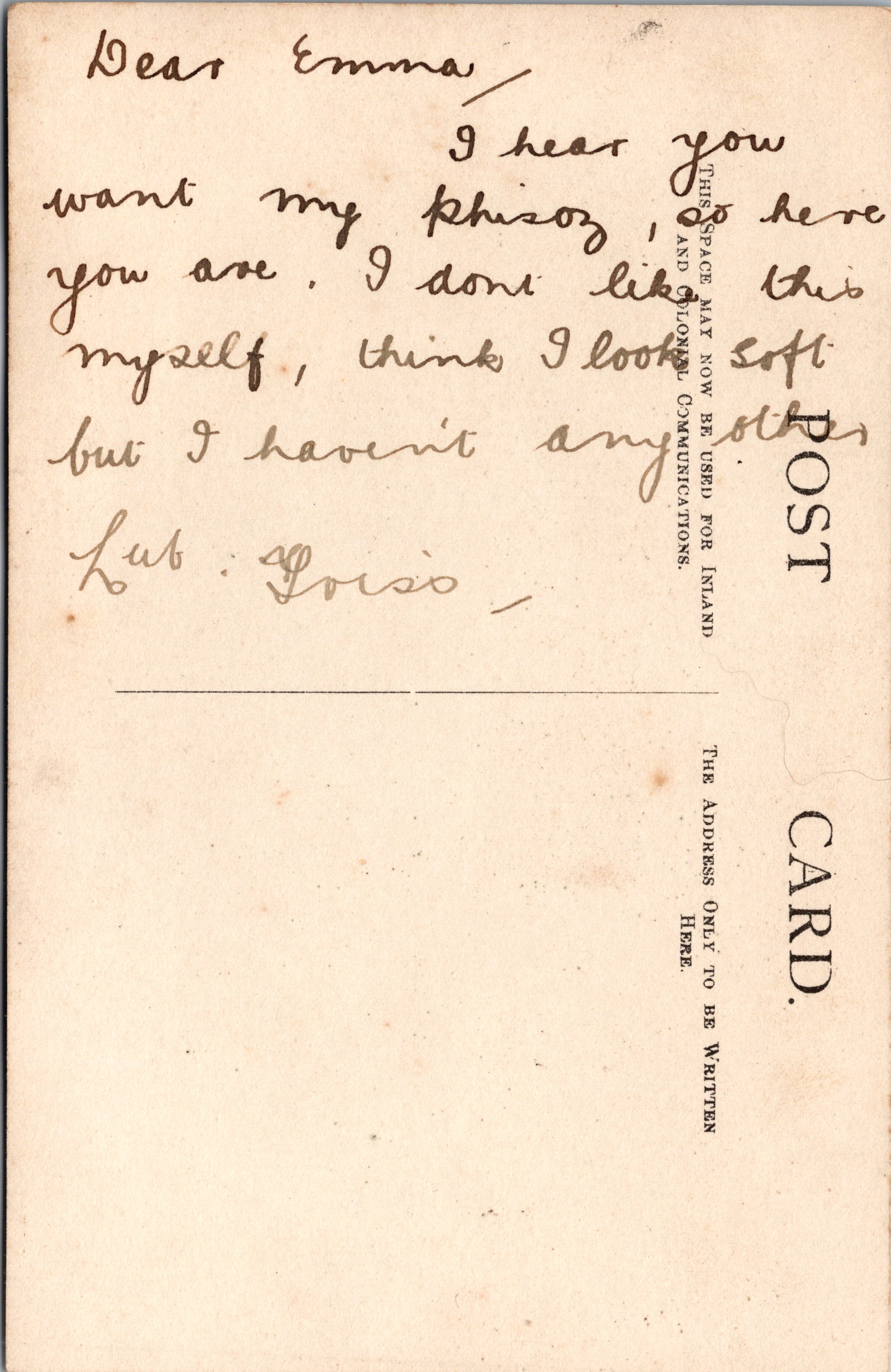 This vintage undivided real photo postcard features an adorable pair of young sisters. The older girl has her arm protectively around the younger girl’s shoulder. The “Artura” stamp box indicates that this photo card was published sometime between 1908 and 1924. This lovely postcard is in very good condition (see scans).