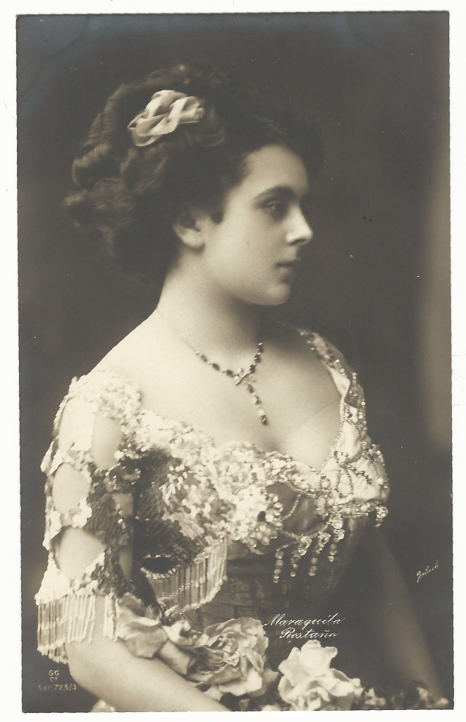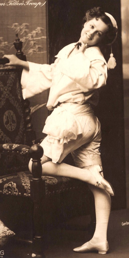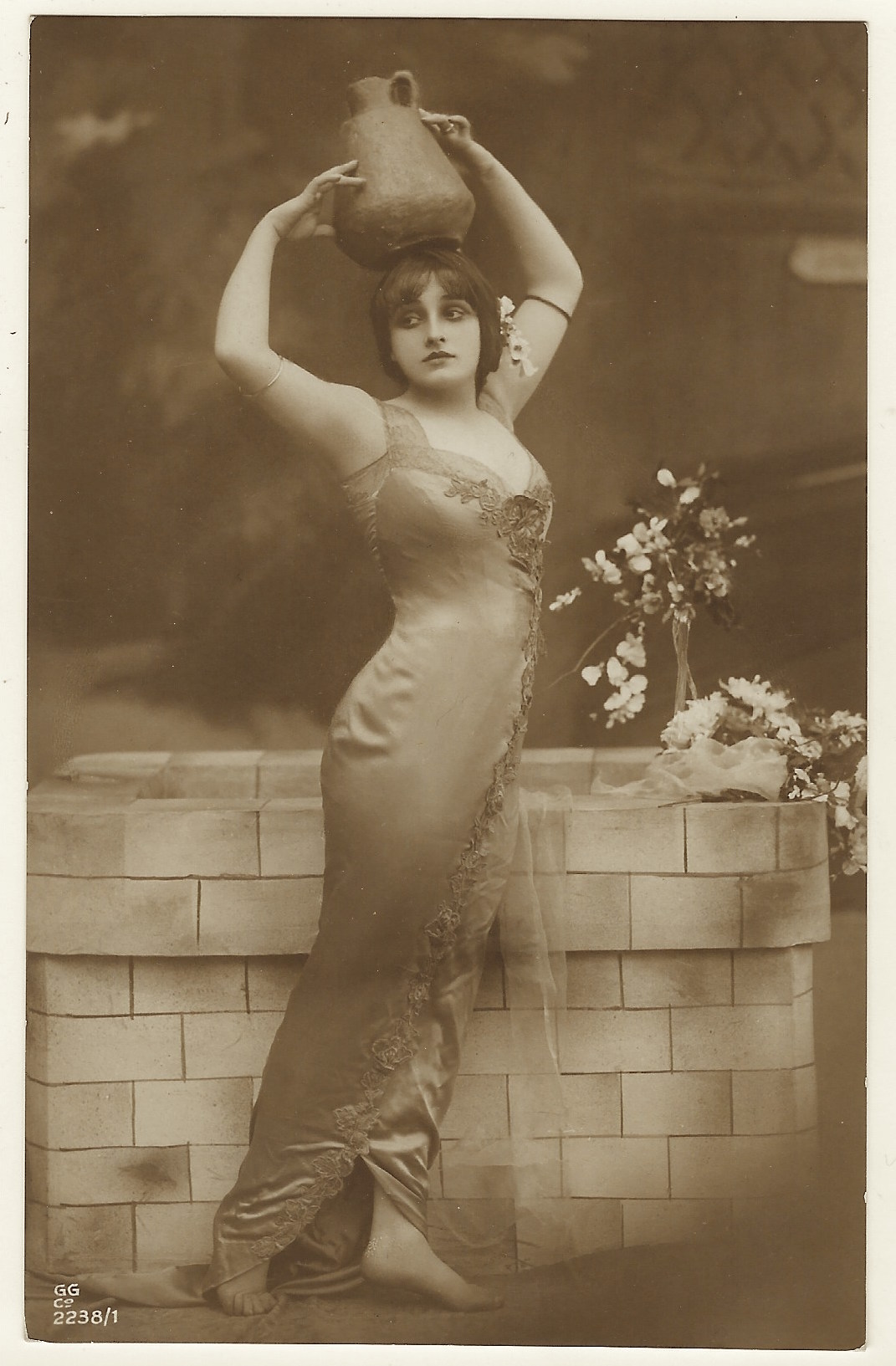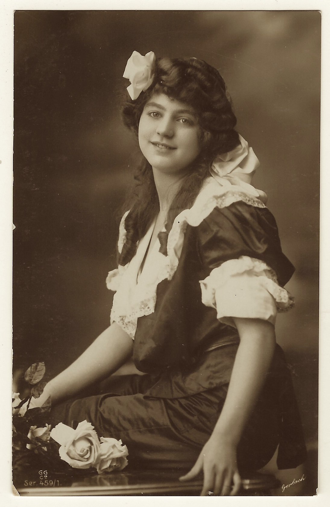 This vintage real photo postcard features stage performer, Lilly Dejo. Lilly is usually seen on vintage postcards with her sister, and the cards are generally labelled “The Dejo Sisters”. A preliminary search found no biographical information about this sister’s act. The postcard was published by Georg Gerlach & Co.. The firm was a real photo card publisher and printer based in Berlin, Germany. This postcard is in very good condition (see scans).