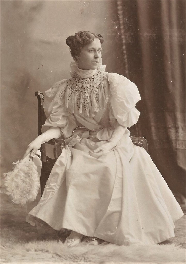 This cabinet card features a uniformed band member and his tuba. At least I think it is a tuba but I would appreciate some confirmation from a cabinet card visitor well versed in identifying musical instruments. Note the sheet music clipped to his brass instrument The musician has a terrific handlebar mustache and his cap indicates that he is a member of the “Ashland Band”. This image was produced by the Brown studio in Jewett City as well as Moosup, Connecticut. Jewett City is a borough in the town of Griswold and Moosup is located in the town of Plainfield. Jewett City and Moosup are 12 miles apart. To drive from Jewett City to Moosup, one starts off on Ashland Street. I wonder if the “Ashland Band” is related to “Ashland Street”? Research reveals that the photographer William H. Brown was born in Packerville, Connecticut in 1853. His father was an overseer in the local mill. Brown was educated in public schools and his first job was as a store clerk. After three years of working in the store, he bought it and ran it for four years until he sold it. He then went back to work as a store clerk but bought a camera and for fun, photographed his friends and others during off hours. In a short time, it was clear that Brown had much talent in the area of photography. In about 1888 he opened a photography business. He had studios in Dayville and Wauregan. Later he opened galleries in Jewett City, Taftville and Moosup. Brown was married in 1874 to Miss Lillian Bennett and the couple had two daughters, Lillian and Alice.