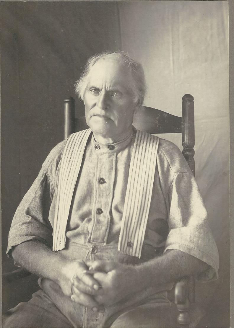 An unidentified photographer produced this wonderful photograph of a stern looking elderly man. Fortunately, the subject of this portrait is identified. The reverse of the photograph has an inscription (see image below) indicating that the subject’s name is “Harley Place”. Harley Place is wearing clothing that indicates that he was a working man. He is wearing overalls and what appears to be a work shirt. Note his large hands. Those big mitts must have come in handy in his work as a farmer. Harley Smith Place was born in Rhode Island in 1856. He was married to Adreanna Place (1866-1933). She was eleven years his junior. The couple had five children; Walter, Cora, Everett, Reuben, and Jennie. The 1910 US census listed him as a farmer in Killingly, Connecticut. The 1920 census found he and his wife living with a niece and nephew in Killingly and still listing his occupation as farmer. The 1930 census reported Harley and Adreanna continuing to reside with their niece and nephew in Killingly. Harley Place died in 1940 and is buried in Glocester, Rhode Island. His gravestone can be seen below.