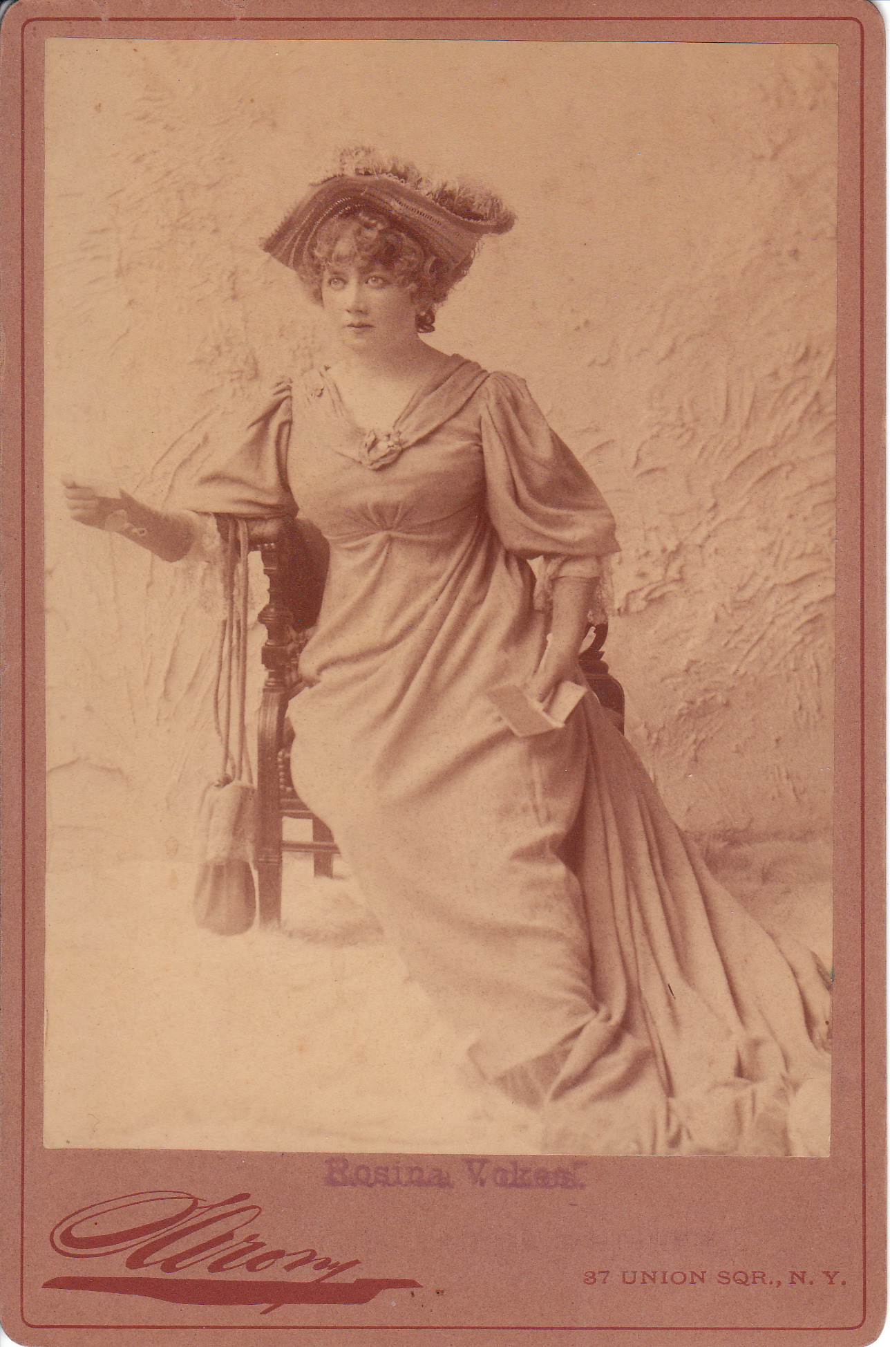 The second photograph captures Rosina and her two sisters posing for an unidentified photographer. The sisters have been identified as Jessie (1851=1884) and Victoria (1853-1894). The reverse of the photograph indicates that the image was formerly part of the “Harold Seton Collection”. Who is Harold Seton? Research reveals that Harold Seton was best known for his work as a journalist, author and collector. He wrote about theatre and society in his column, Theatre Thoughts”, which appeared in Theatre Magazine. He accumulated over ten thousand theatrical photographs of actors and actresses who performed between 1870 and 1900. He donated some of his collection to the New York Historical Society and some are located at the Wake Forest University library, as well as a number of other institutions. A Harold Seton was a theatre actor who performed in eight plays between 1919 and 1935. Although I doubt that the two Harold Setons’ are the same men; no evidence could be found to determine if they were one and the same man.