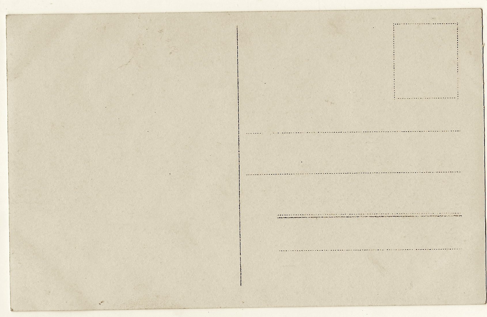 Postcard collectors sometimes encounter photo postcards that heighten curiosity but defy explanation. This vintage real photo postcard is a perfect example of such a card. The image is comprised of five pretty young women wearing unusual hats. Perhaps I should say “bizarre” rather than “unusual”. I believe their hats are made of paper, although they are designed to look like feathers. Two of the hats have a design that includes a crescent moon. If I was asked to judge this photo, I would give the “Creativity Award” to the woman wearing paper earrings. Why are the women wearing these hats. Perhaps they are performers in a show? Another theory is that they may be dressed for a party or for a carnival. What’s your guess? The studio that took this photograph was named “La Photo Mecanique” (The Mechanical Photo). I believe, with great uncertainty, that the studio was located in St. Martin, France. It is also my belief that this postcard was published between 1913 and 1929, given that it has a Crown Studio stamp box. (SOLD)