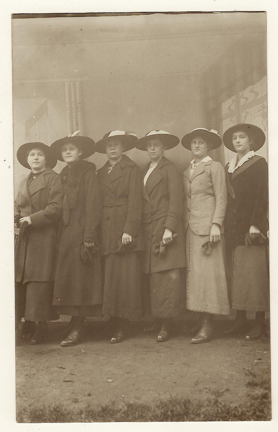 “There’s something happening here. What it is ain’t exactly clear”. These Buffalo Springfield lyrics describes my reaction to the image presented by this vintage real photo postcard. Was this photo taken to showcase attire from a fashion company? Are these women related or are they members of some sort of organization? The answers to these questions are lost to history. This vintage postcard is in good condition (see scans).